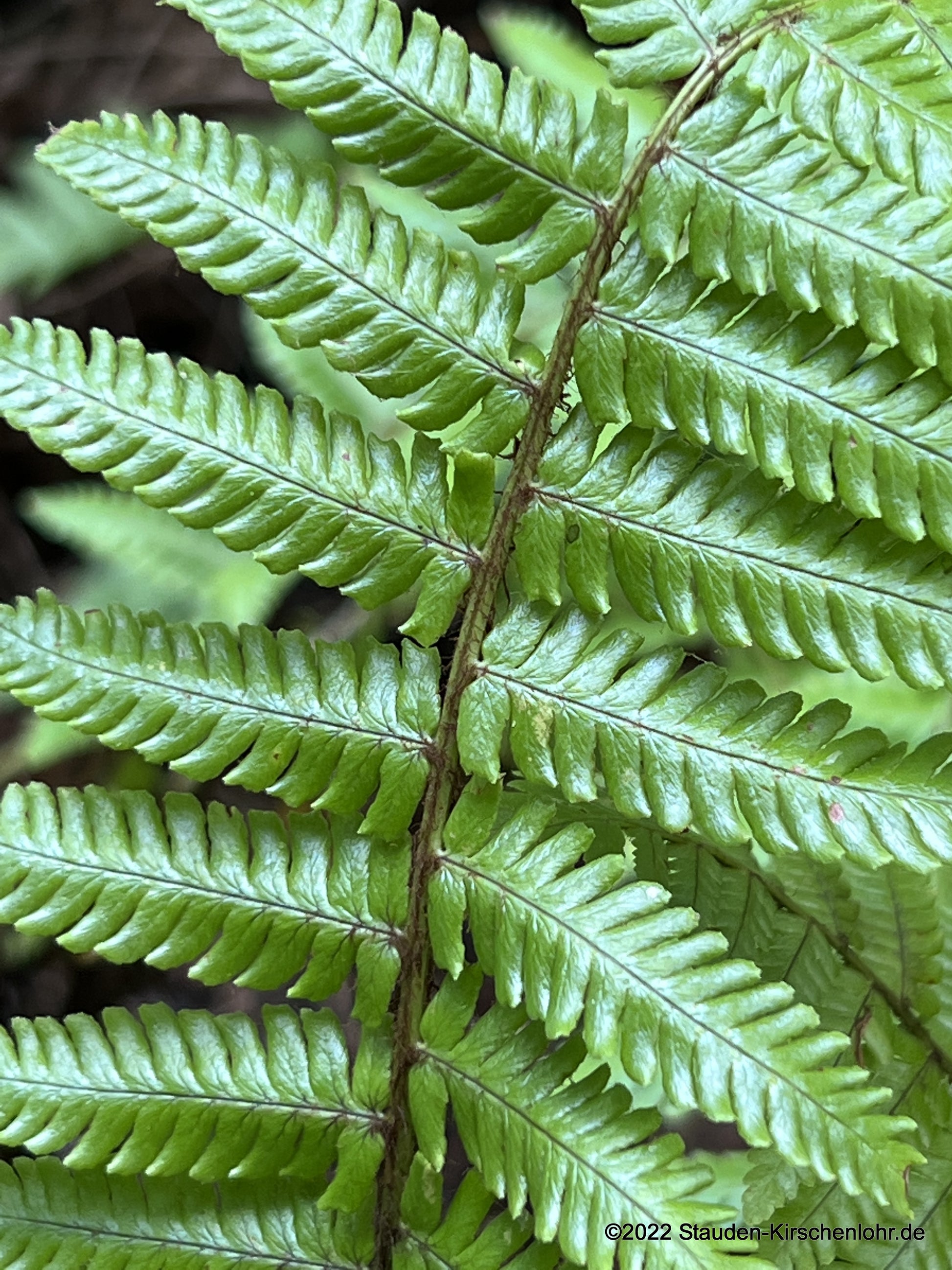 Zweifach gefiederte, elliptische Wedel; an der Spitze oft lang ausgezogen. Bildet schöne, gleichmäßige Trichter. Der Boden sollte etwas feuchter sein. syn D. buschiana