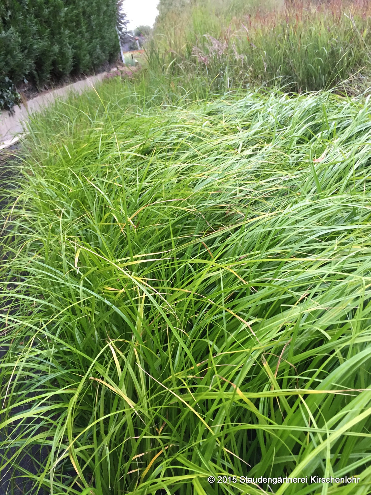 Gelblich-braune Blütenstände. Schmale, sehr elegant überhängende, wintergrüne Blätter. Selektion von Jan Spruyt (B). Auch in größeren Gruppen sehr wirkungsvoll!