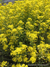 Steingartenpflanze mit leuchtend gelben Blüten in dichten Trauben. Es bildet dichte Polster mit meist grau behaarten Blättern. Wintergrün.