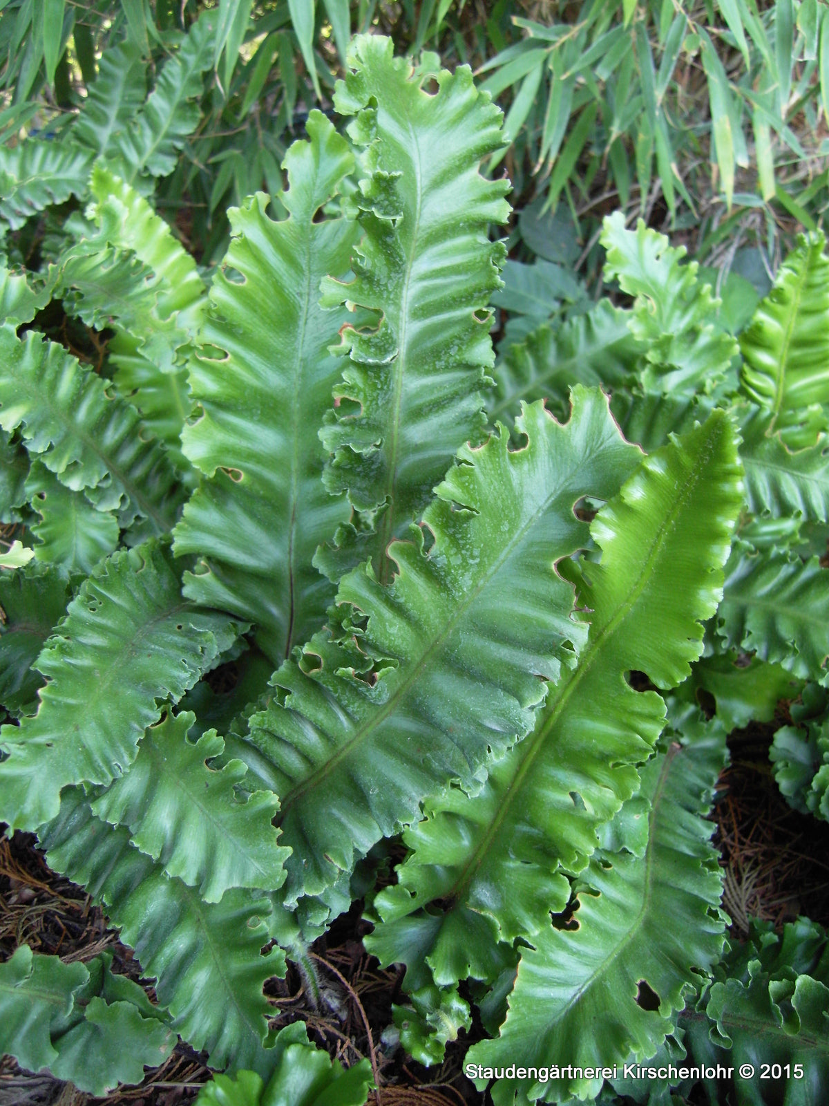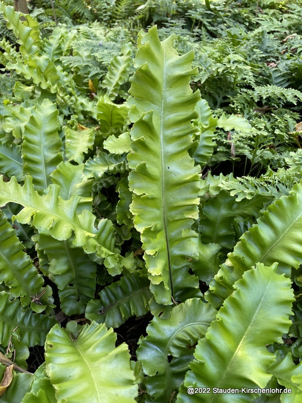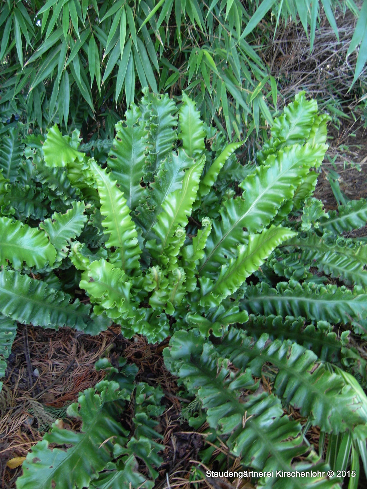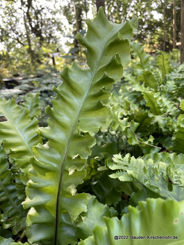 Ein seltener alter Kultivar, mit glänzenden und elegant gewellten Blatträndern ist steril und nur vegetativ zu vermehren. Absolut besonders! syn. Phyllitis s. 'C. B. N.'.