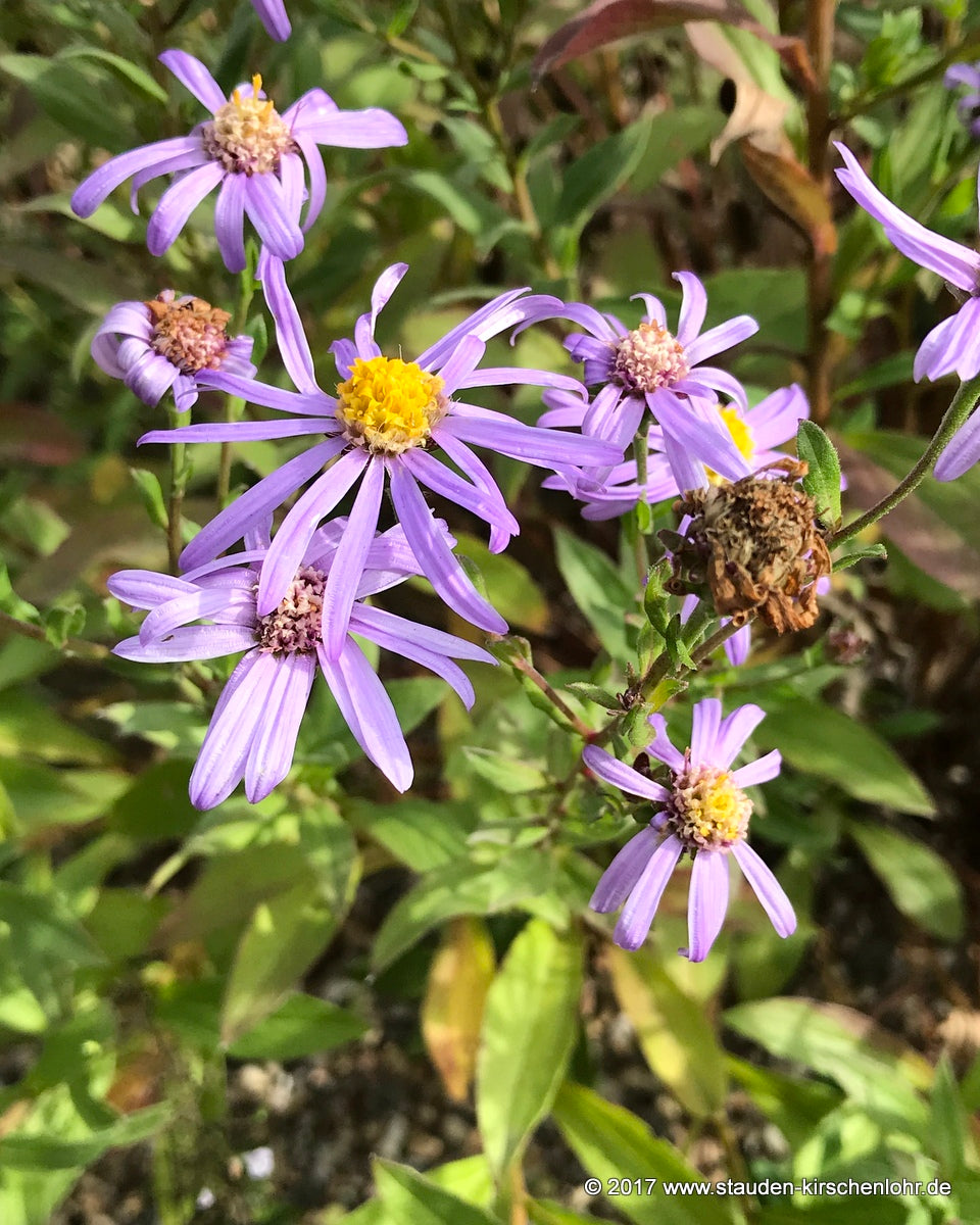 Helle blauviolette Blüten. Robuste, reichblühende Kreuzung, die bei Frikart (CH) entstanden ist. Die Blüten sitzen auf langen Stielen. Lange Blütezeit! A. amellus × A. thomsonii.