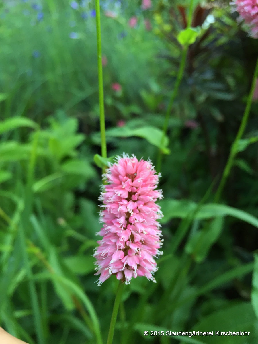 Walzenförmige, dichte, kräftig malvenrosa Scheinähren. Reichblühende Auslese. Nicht wuchernd. Länglich eiformige Blätter. (syn. Polygonum bistorta 'H. T..').