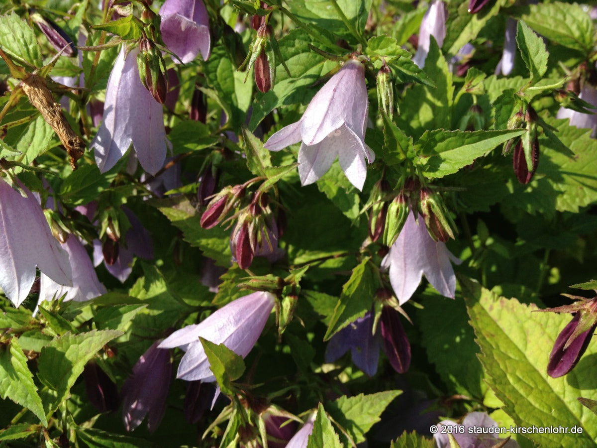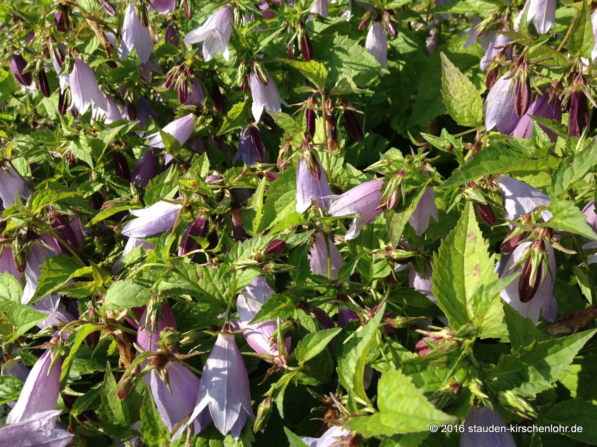 Schlanke, hellviolette Blütenglocken an drahtartigen, dünnen Trieben. Spitzherzförmige Blätter. Sommergün. Sehr selten angebotene Pflanze aus England. Kreuzung mit Symphyandra ossetica. Gattungsbezeichnung?