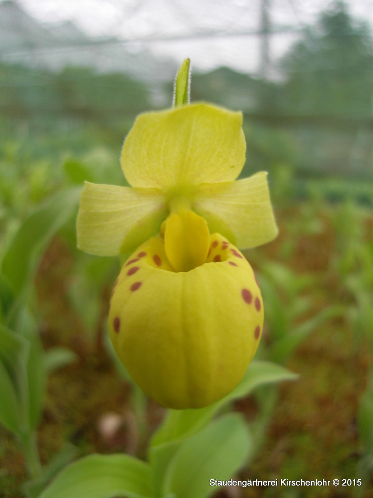 Bei dieser Auslese ist der Schuh, die Sepalen und die Petalen buttergelb. Sehr auffällige Färbung. Bräunliche Punktierung mal mehr; mal weniger. Später Autrieb!