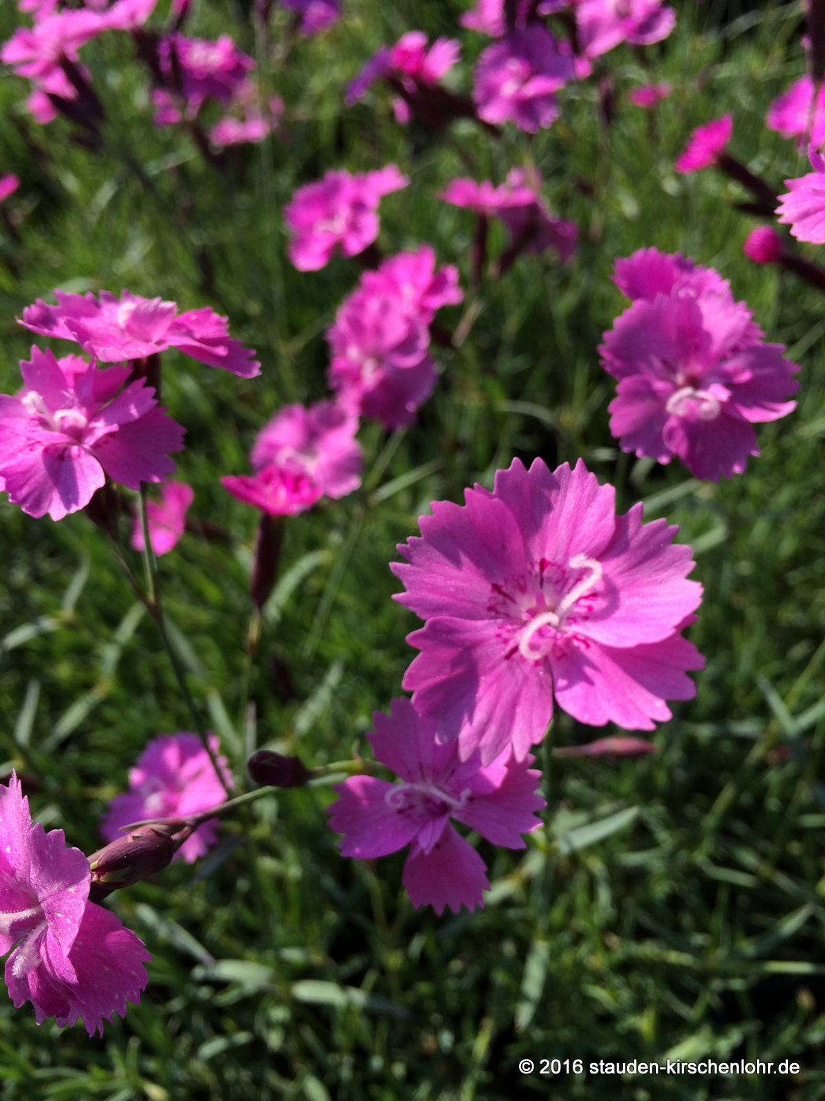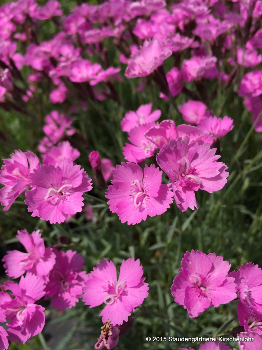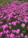 Relativ kleine, violettrosa Blüten die an den Rändern fein eingeschnitten sind. Sehr feines, graugrünes, spitzlineales Laub in dichten Polstern. Wintergrün.