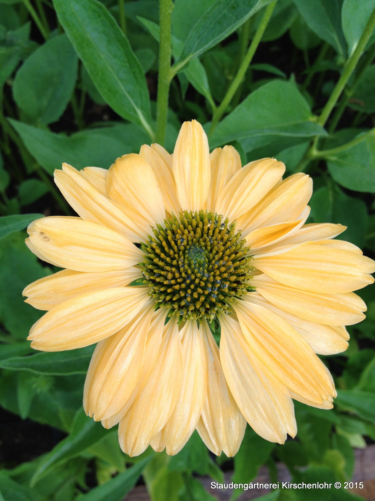 Zart melonengelbe Blüten mit waggerecht stehenden Blütenblättern. Wohlgeformt präsentiert sich diese Sorte. Interessante Farbergänzung im Sortiment.