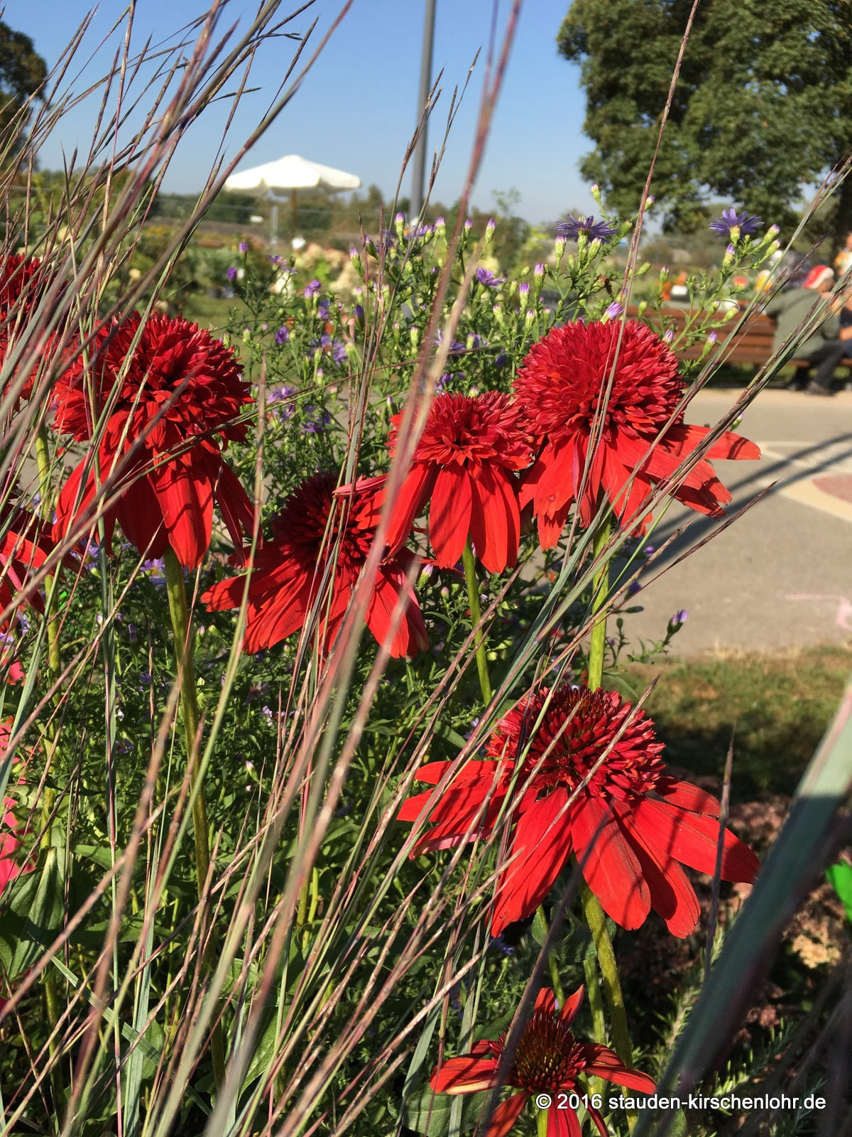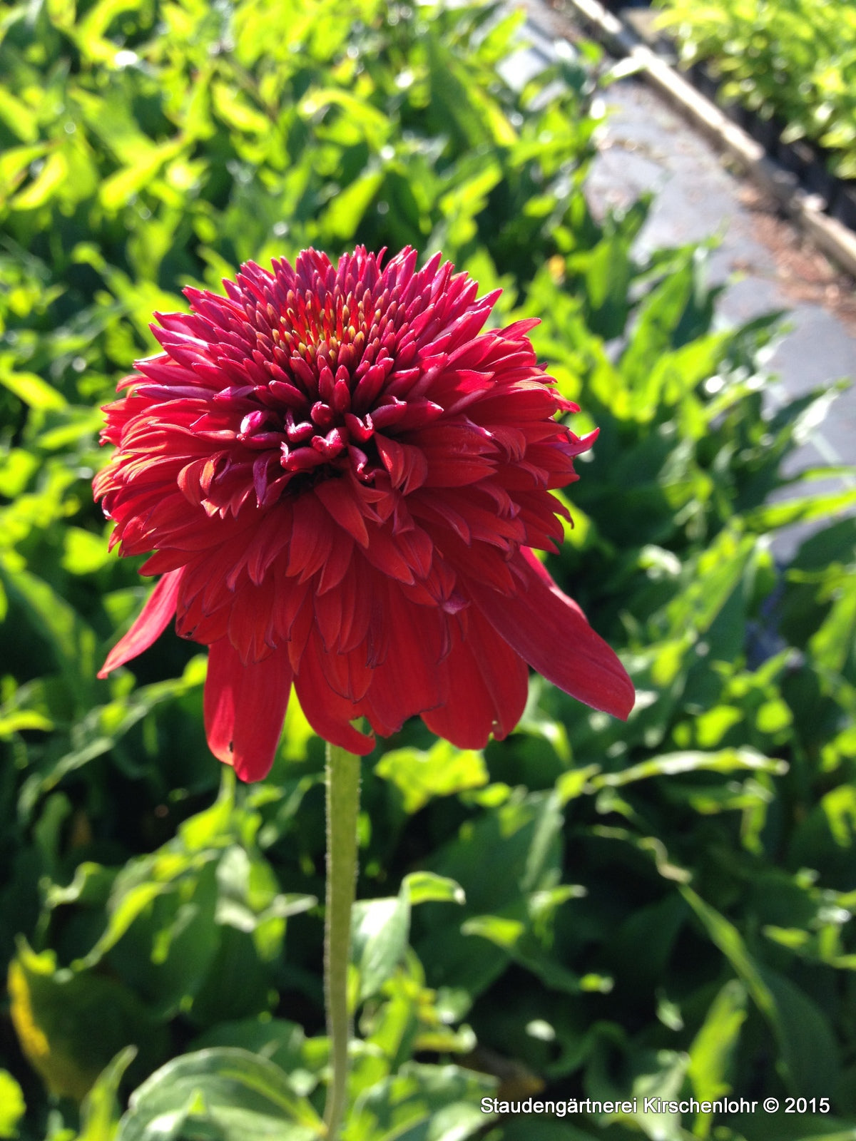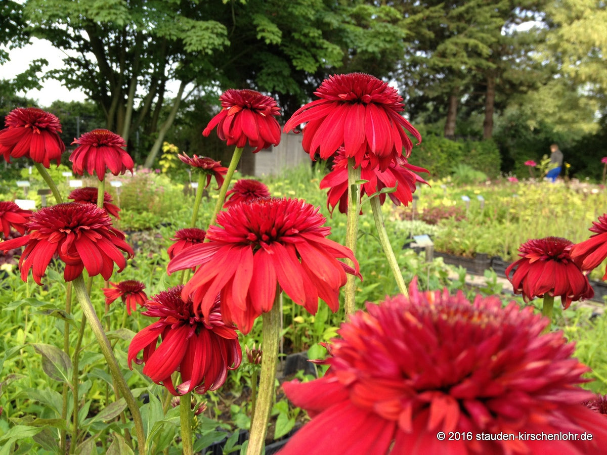 Gefülltblühende, tiefrotblühende Sorte. Schmales, lanzettliches, dunkelgrünes Laub. Gute Sorte von Marco van Noort (NL). Auffällig gute Winterhärte.