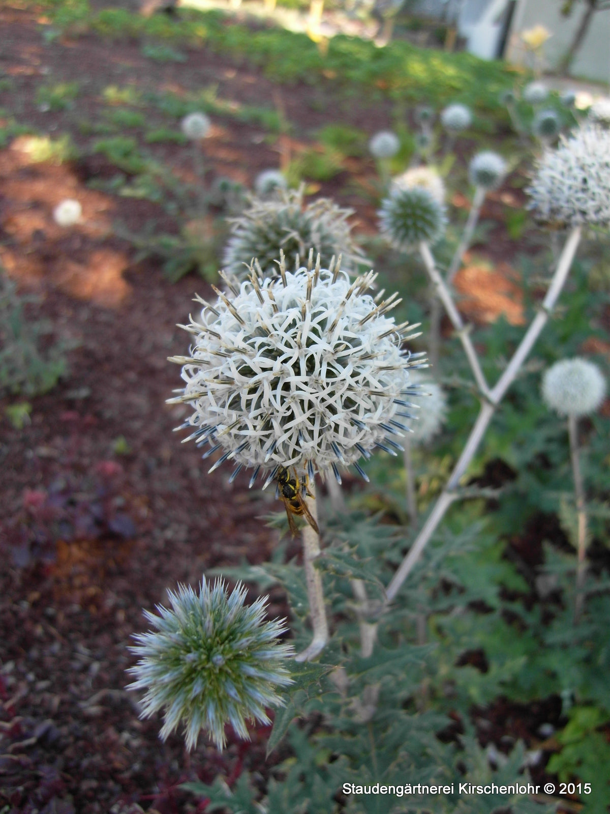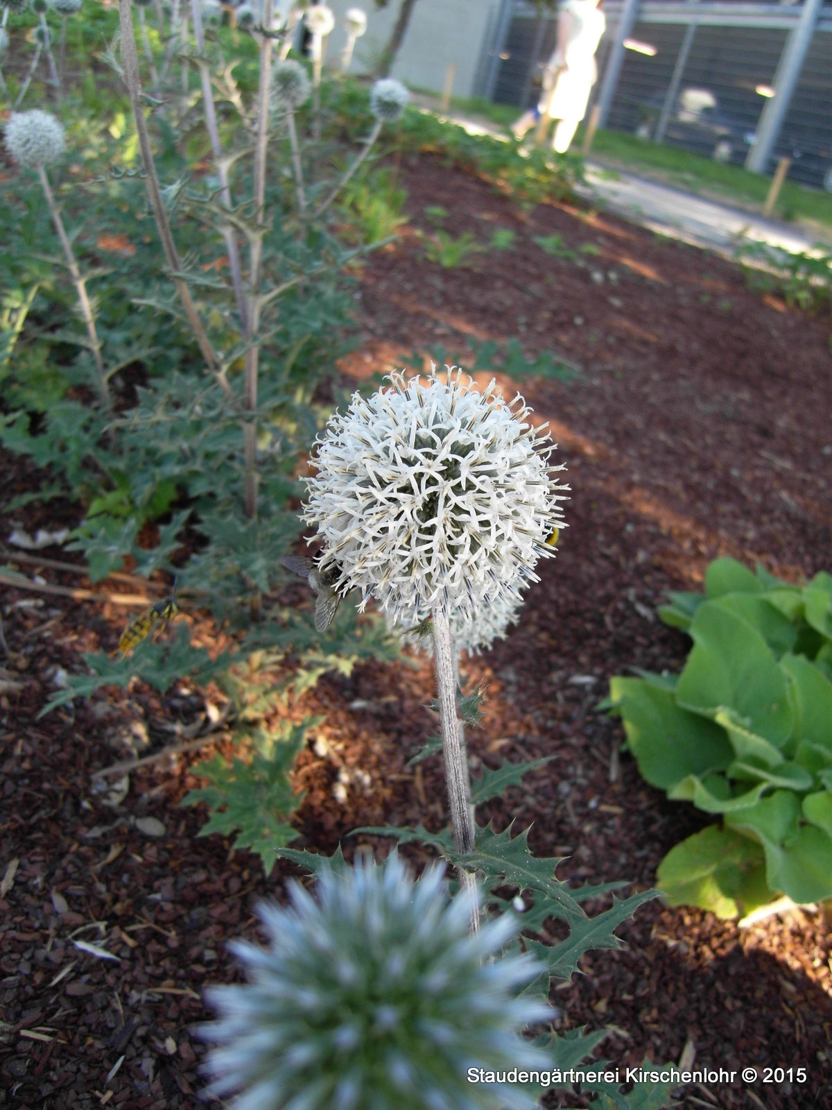 Großblütige, weißblühende Auslese mit rötlichen Stängeln. Gebuchtete, spitzlappige Laub. Bei Bienen und Schmetterlingen beliebt. Für trockene Standorte.