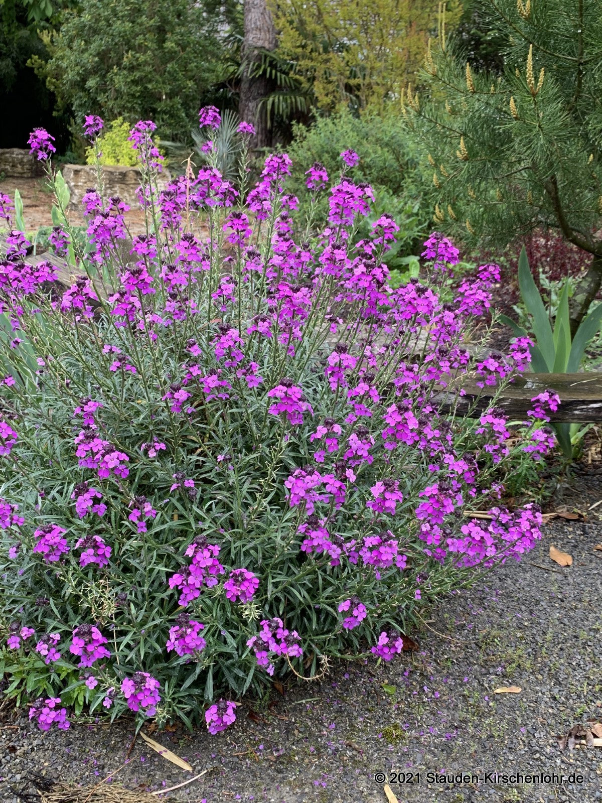 Violettrosa Blüten in traubigem Blütestand. Graugrüne, lineal bis lineallanzettliche Blätter. Wintergrün. Rückschnitt hält die Pflanze kompakt. Nur für durchlässige, steinige Böden mit sehr gutem Wasserabzug!