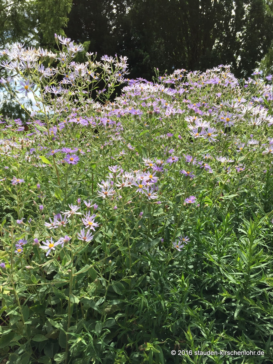 Diese Sorte besitzt reinblaue bis blauviolette, relativ große Blüten. Im Abblühen heller werdend. Reichverzweigte, standfeste Naturhybride. Vielseitig verwendbar! syn. Aster x herveyi 'Twilight'