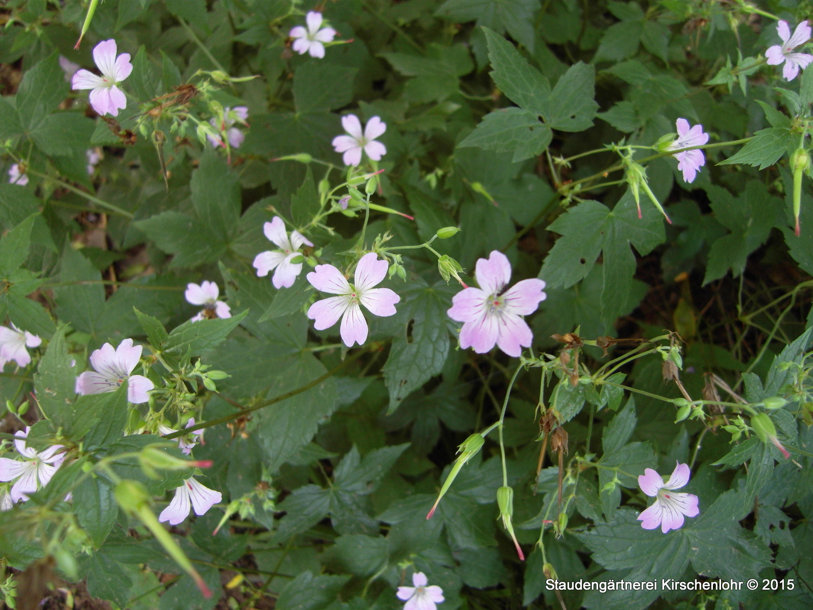 Selektion mit größeren, lilarosa Blüten. Glänzende, stark gelappte Blätter. Sehr wertvolle Pflanze, weil variabel einsetzbar. Sommergrün.