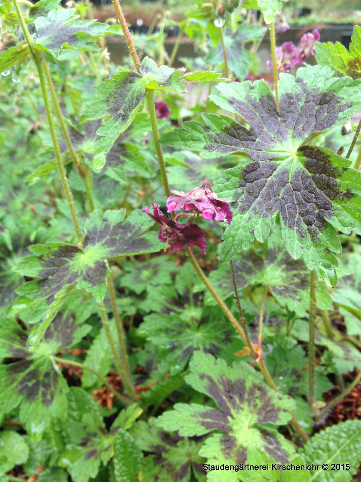 Naturselektion aus der Gegend von Zagreb. Rotbraune Blüten. Dunkelgrüne, große Blätter mit sehr dekorativer, dunkelbrauner Zone. Sommergün.