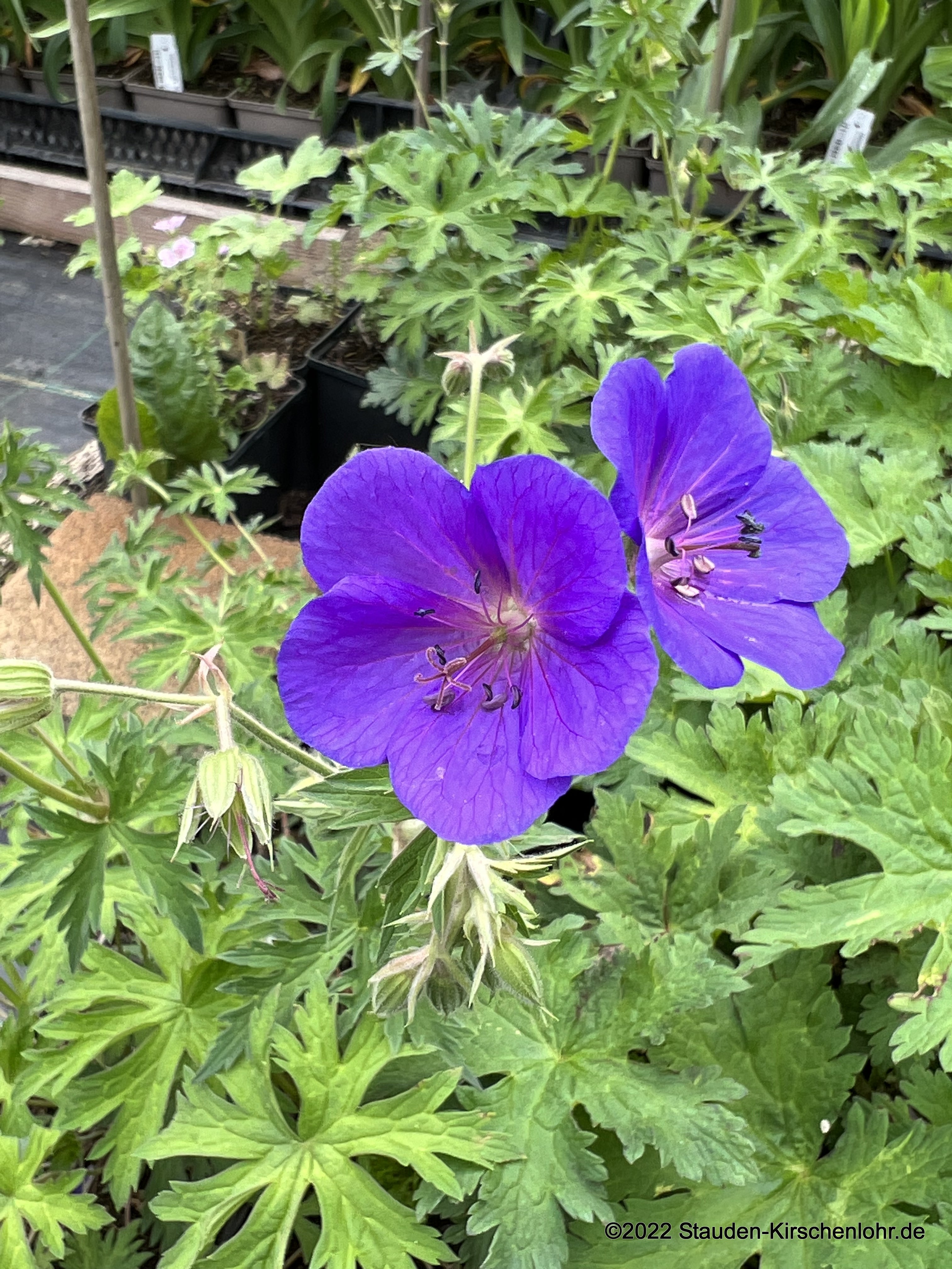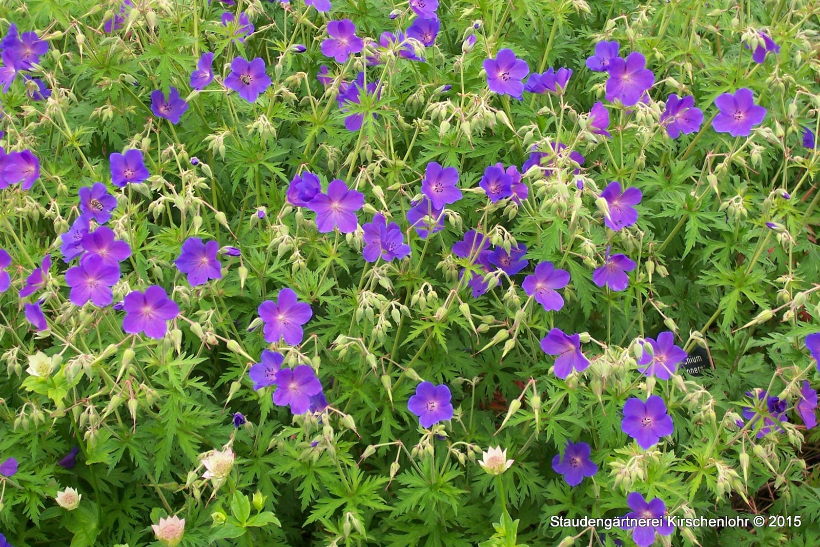 Große, blauviolette Blüten. Blätter mit schmalen Abschnitten, tief eingeschnitten. Wüchsige, buschigwachsende Sorte. Guter Blüteneffekt. Sommergrün.
