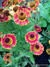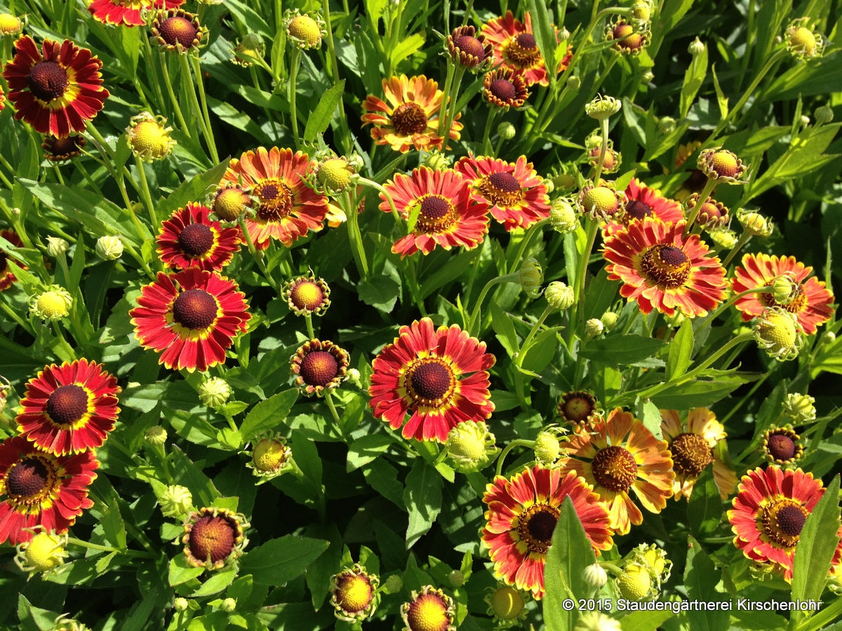 Rote Blüten gelbem Rand und gelben inneren Ring. Reichverzweigte Stiele. Kompakt wachsende Sorte von AB-Cultivars (NL).