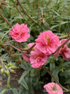 Kräftigrosa, gefüllte Blüten. Aufrechter, dichtbuschiger Wuchs. Graues, länglich-ovales Laub an etwas verholzenden Trieben.