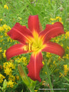 Auffällige, leuchtendrote Blüten mit sehr großen spinnenförmigen Blütenblättern. Grünlichgelber Schlund.