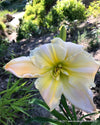 Helle cremefarbene Blüten mit gelblichem Schimmer und grünemem Schlund. Auffällige Nervatur. Sehr Großblumig.