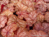 Auffällig purpur-rote, gebuchtete Blätter mit silbriger Schattierung. Cremeweiße Blütenrispen. Wintergrün. Tolle farbliche Ergänzung im Sortiment.