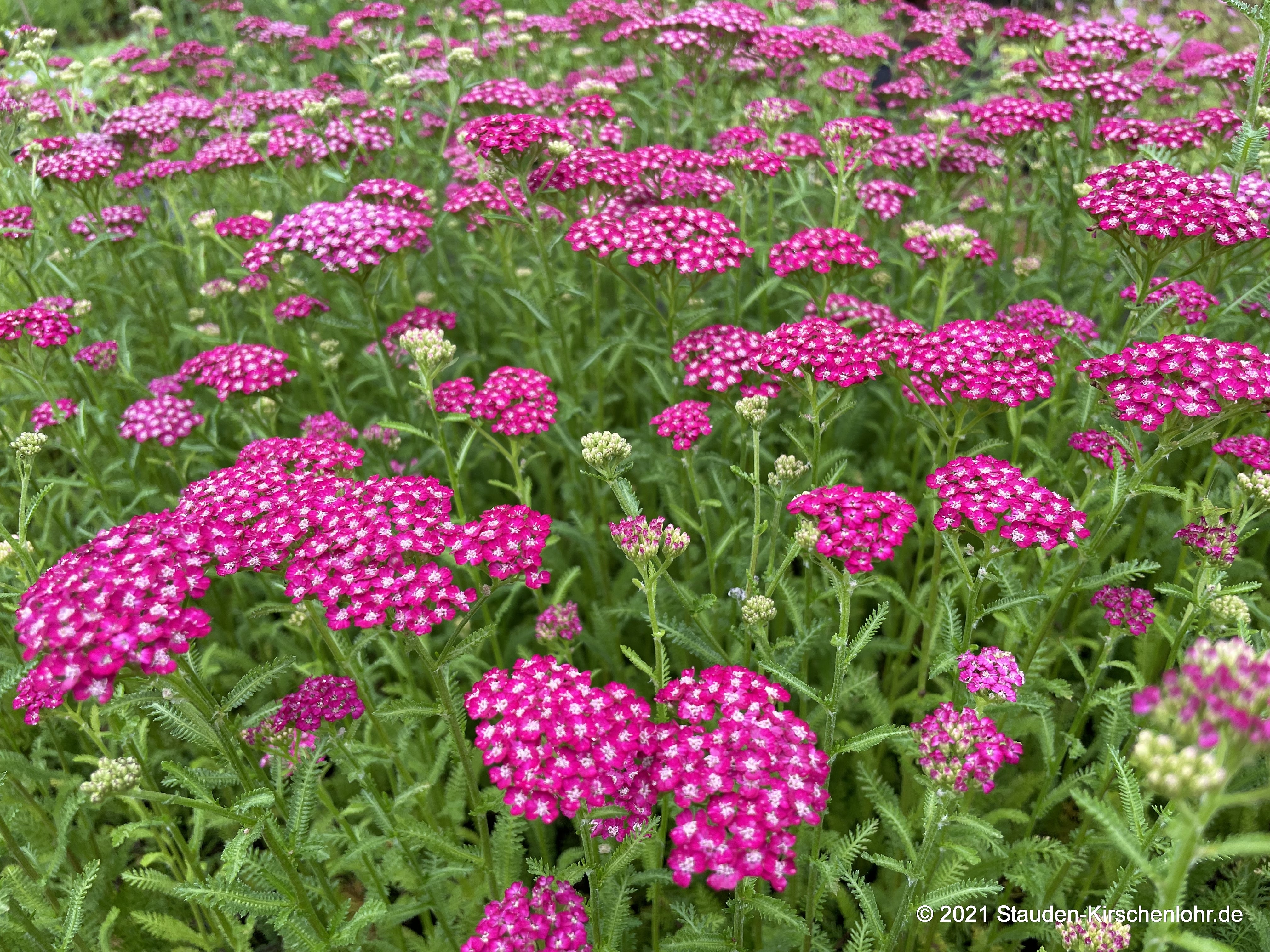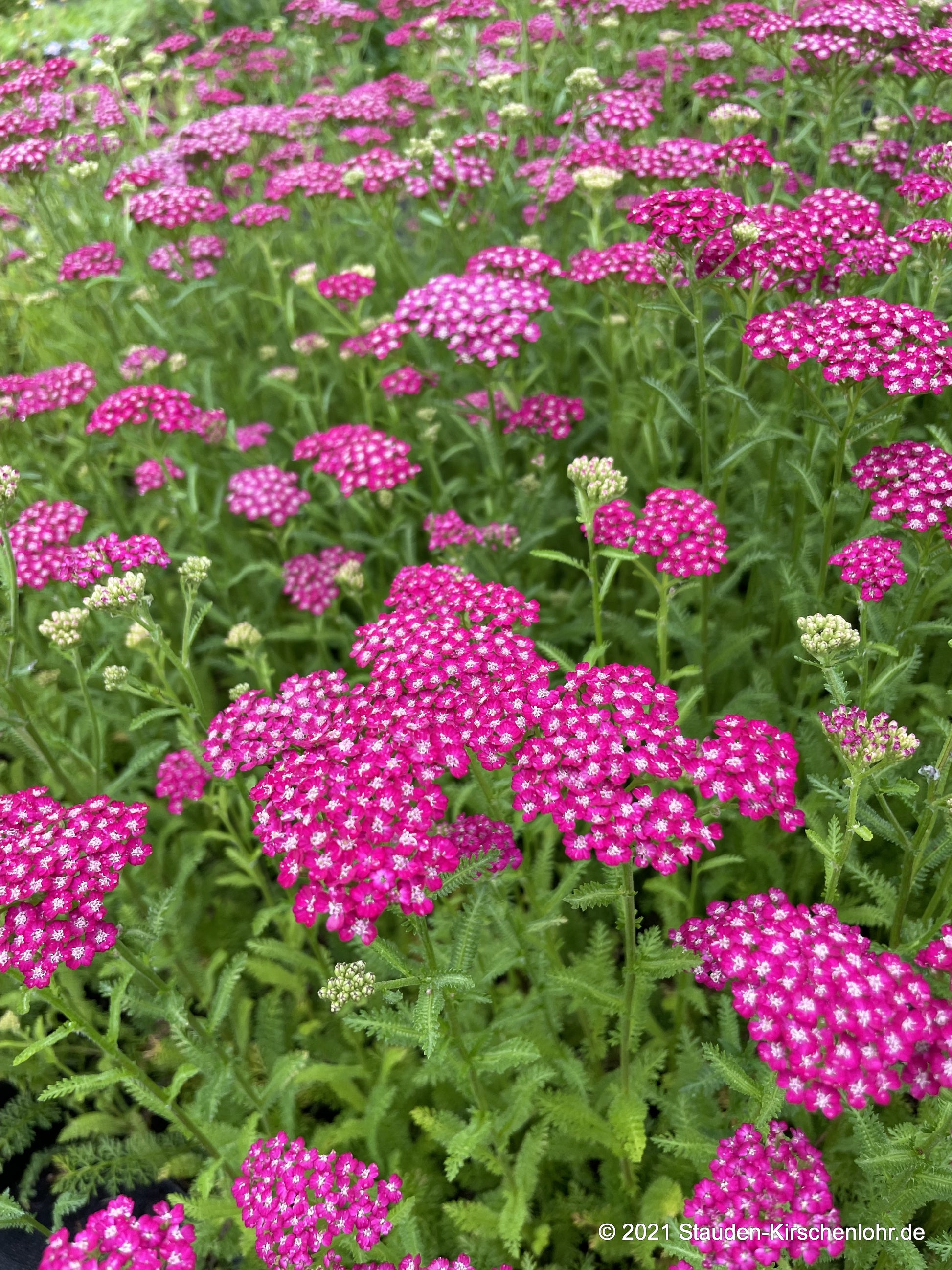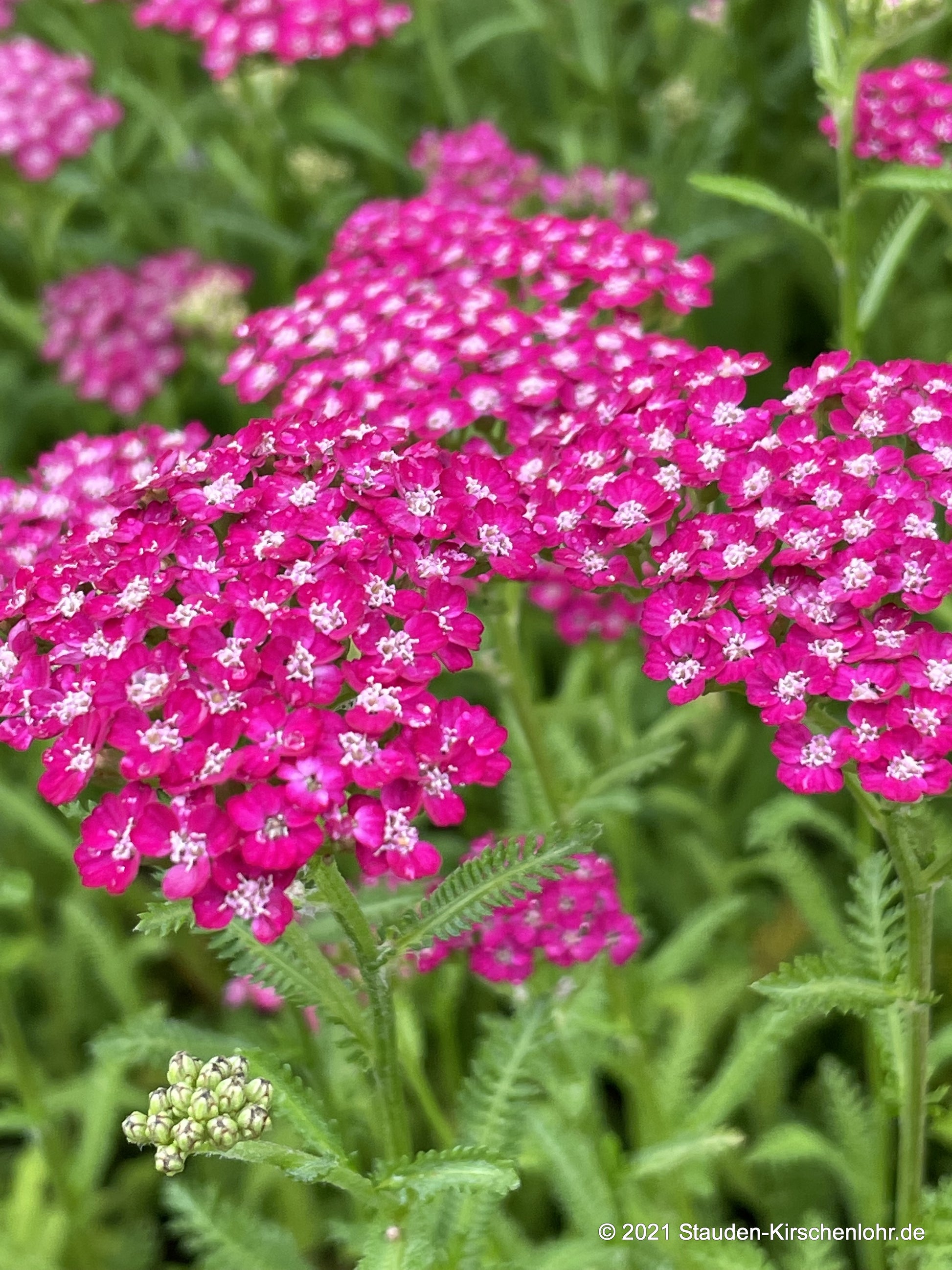 Leuchtend violettrote, später rosa färbende Blüten. Dunkelgrüne, gefiederte Blätter. Bevorzugt lockere, durchlässige Böden.