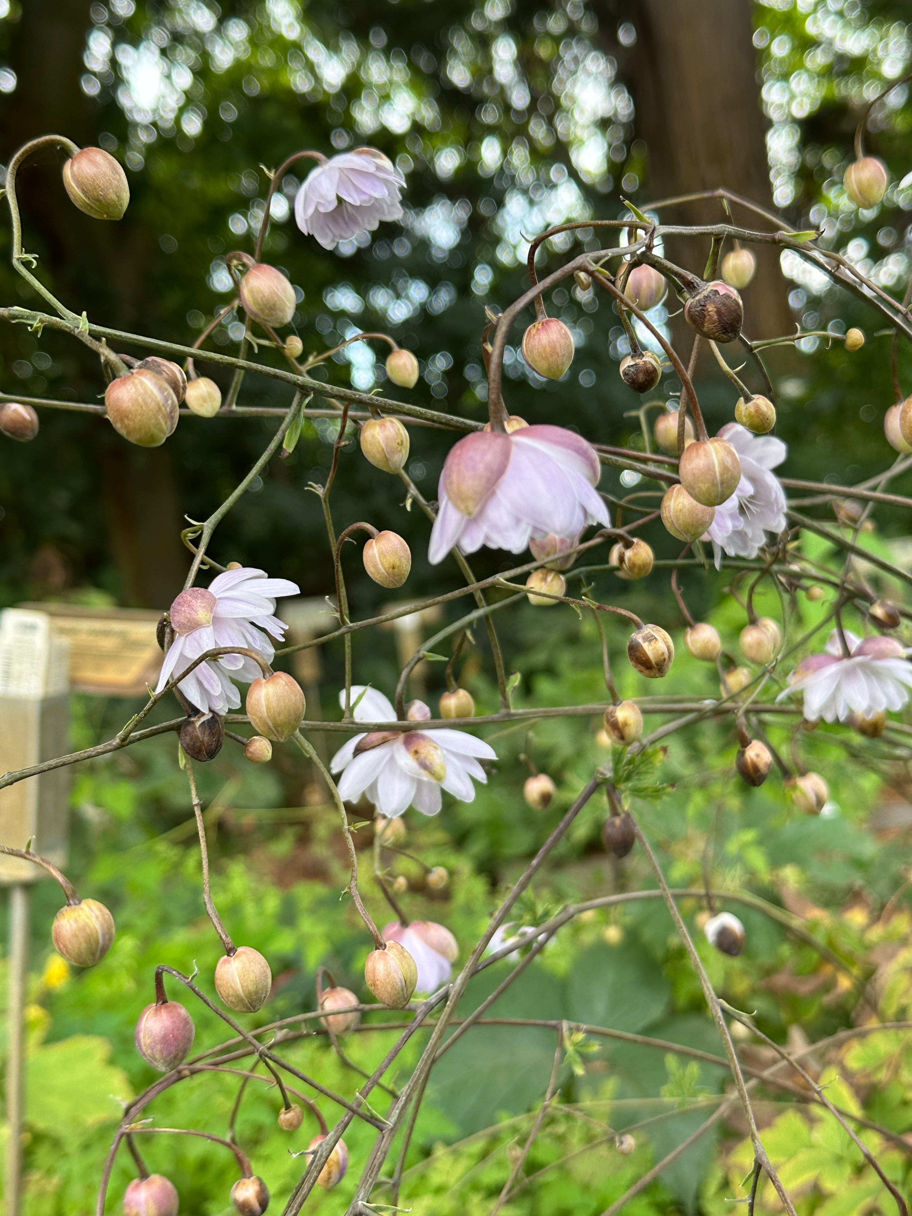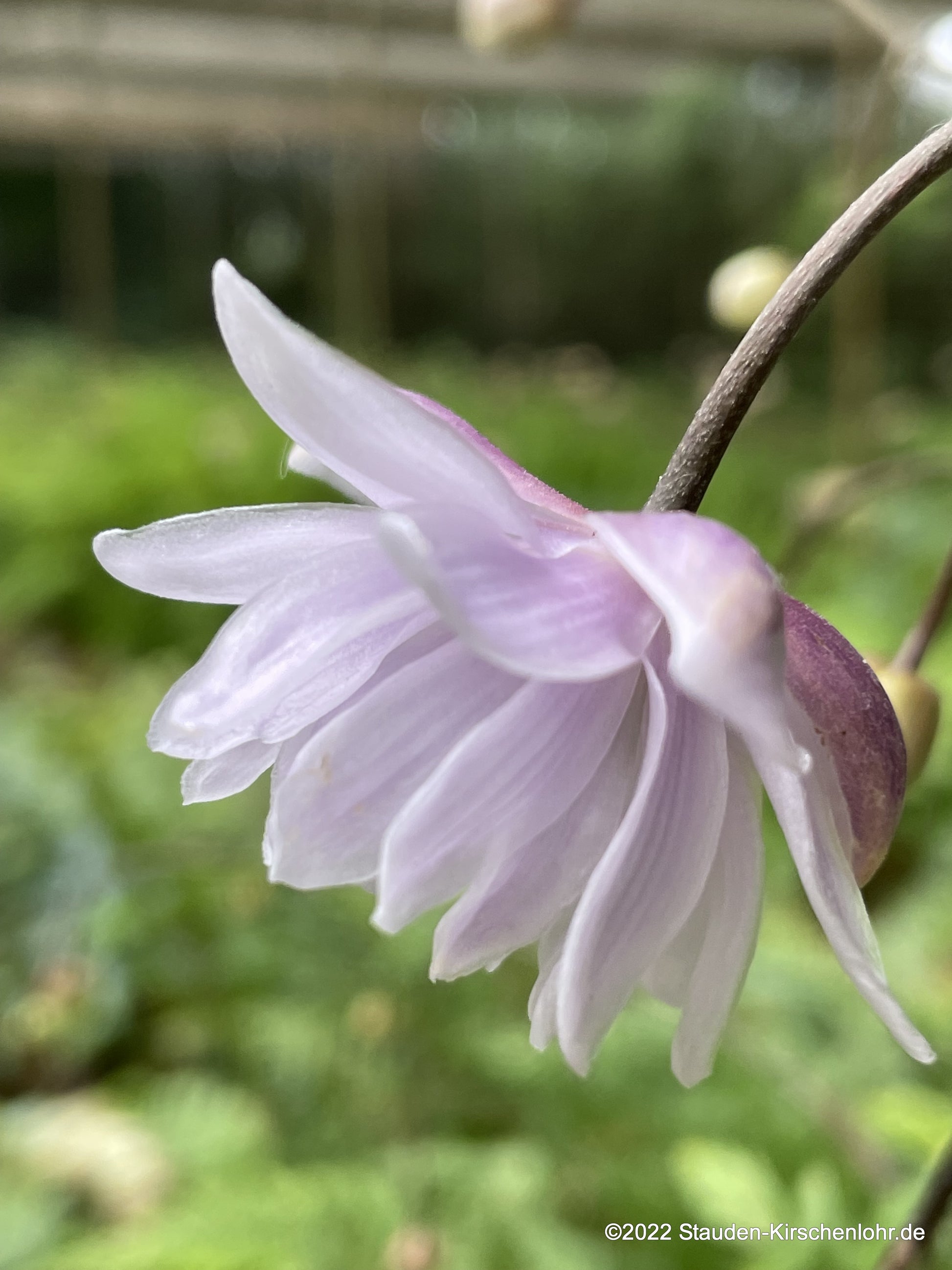 Wachsartige, bogig überhängende, hell purpurrosa "Anemonenblüten". Begehrte Sammlervariante mit deutlich erhöhter Anzahl Blütenblätter. Ein Standort im kühlen; frisch-feuchter und tiefgründiger Boden ist bestens. Nicht in jedem Jahr die gleiche Anzahl Blütenblätter. Sommergrün.