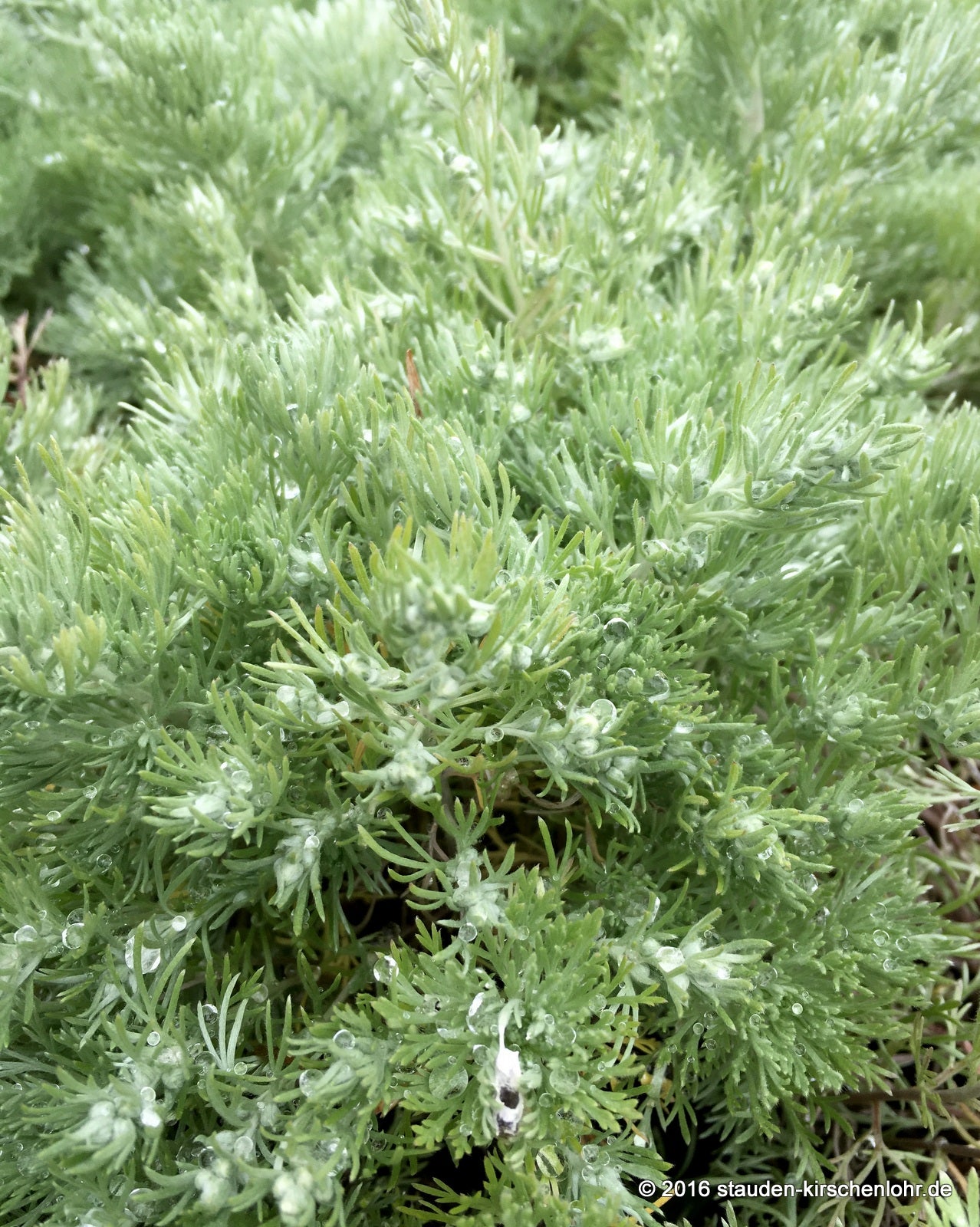 Gelbliche Blütchen. Filigrane, silbergraue Blätter. Sehr dekorativ. Optimal für nährstoffarme Standorte. Sommergrün. Schutz vor Winternässe ist empfehlenswert.