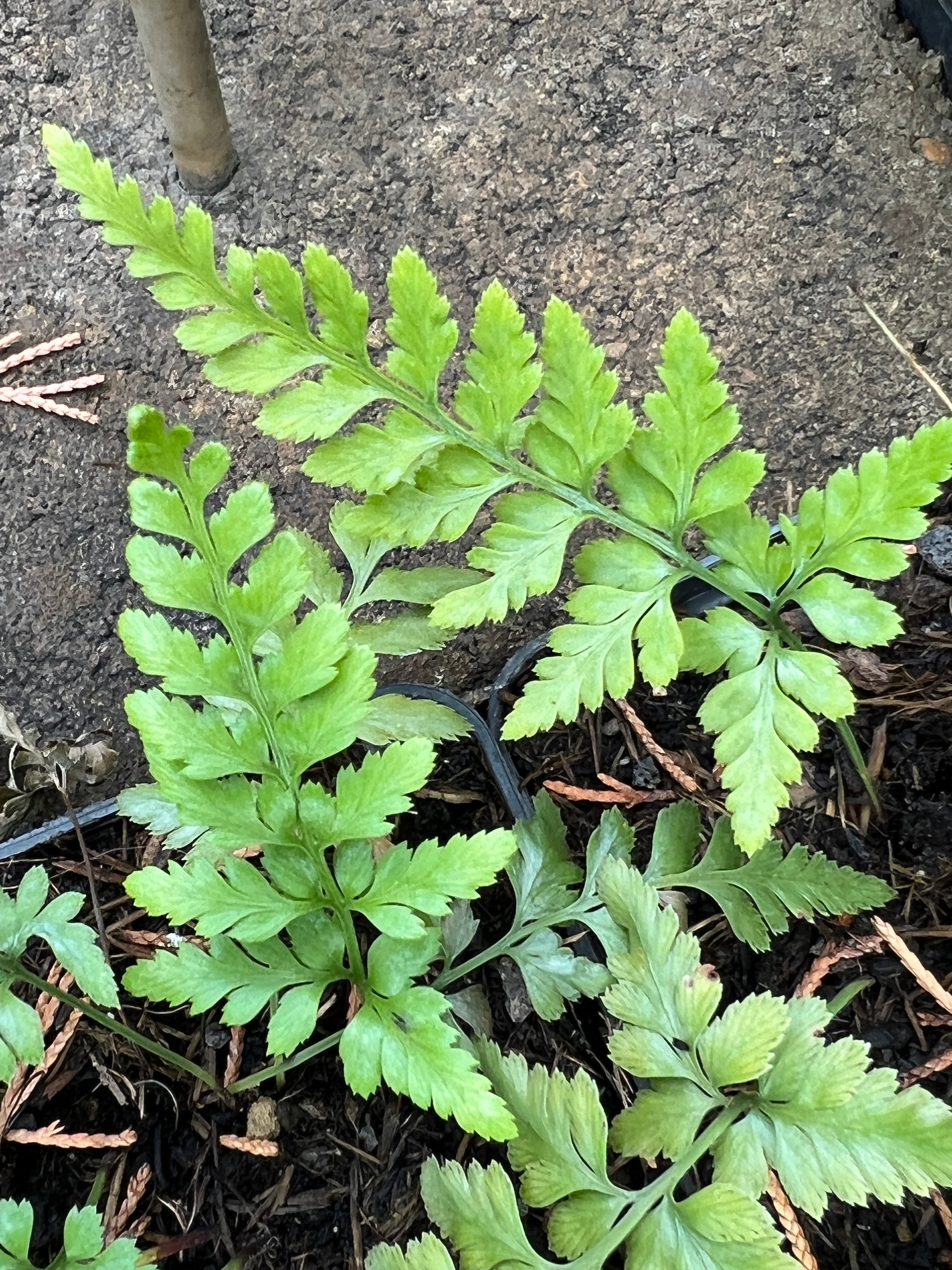 Fiederchen länglich eiförmig, spitz oder stumpflich gezähnt. Wedelstiele am Grund glänzend schwarz. Zwei- bis dreifach gefiederte Wedel. Diese sind 10 bis 30 cm lang. Blattstiele so lang oder länger wie die Spreite, oft bis zur Spreite schwarzbraun. Gilt als gefährdete Art.