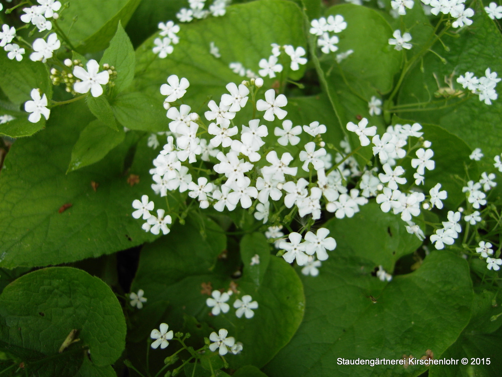 Kreideweiße Blüten trägt diese englische Sorte. Matte, rau behaarte, herzförmige Blätter. Wertvolle und zuverlässige Staude. Von Elizabeth Strangmann (GB).