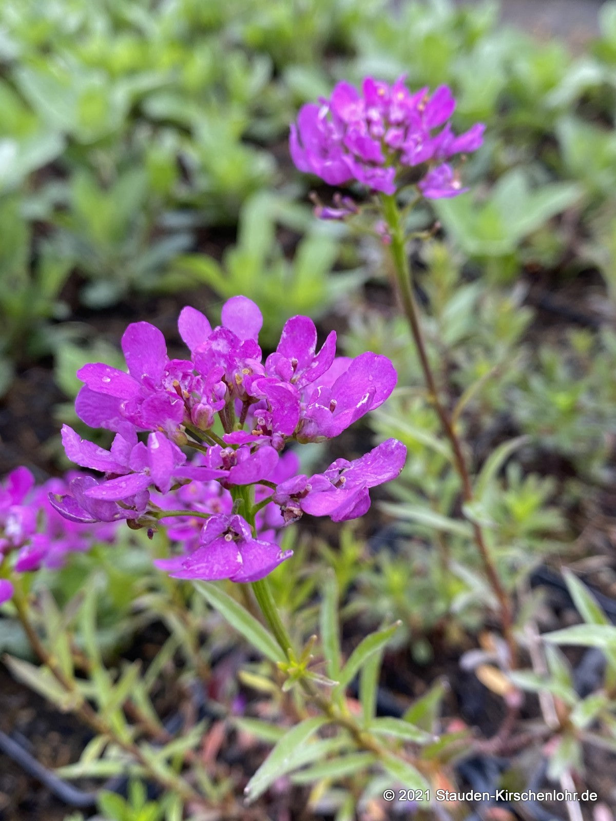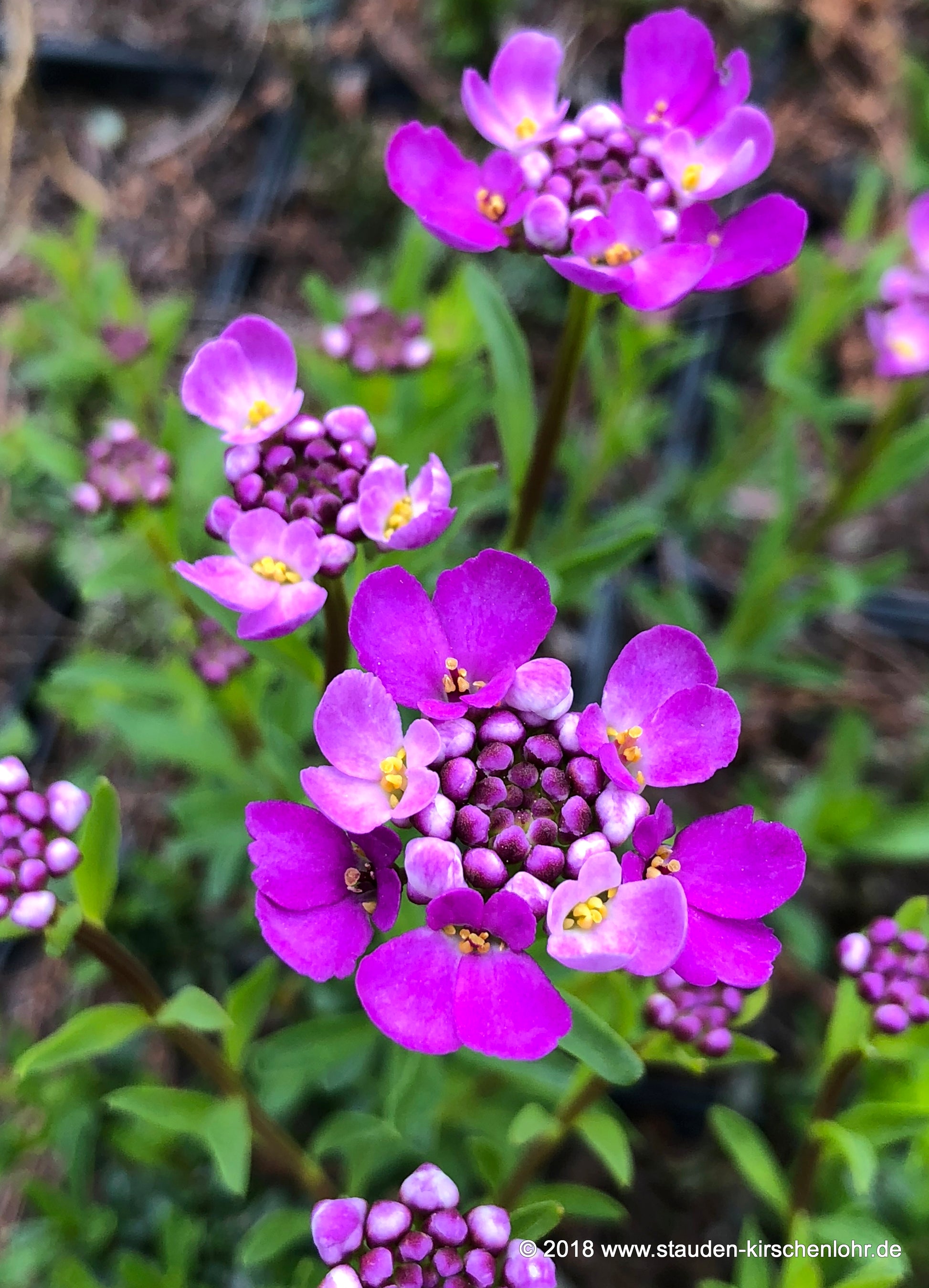 Amethyst bis lilafarbene Blüten, doldig bis doldentraubig angeordnet. Lineale bis spatelförmige, sattgrüne Blätter. Immergrün. Dichter, kompakter und aber auch schwacher Wuchs.