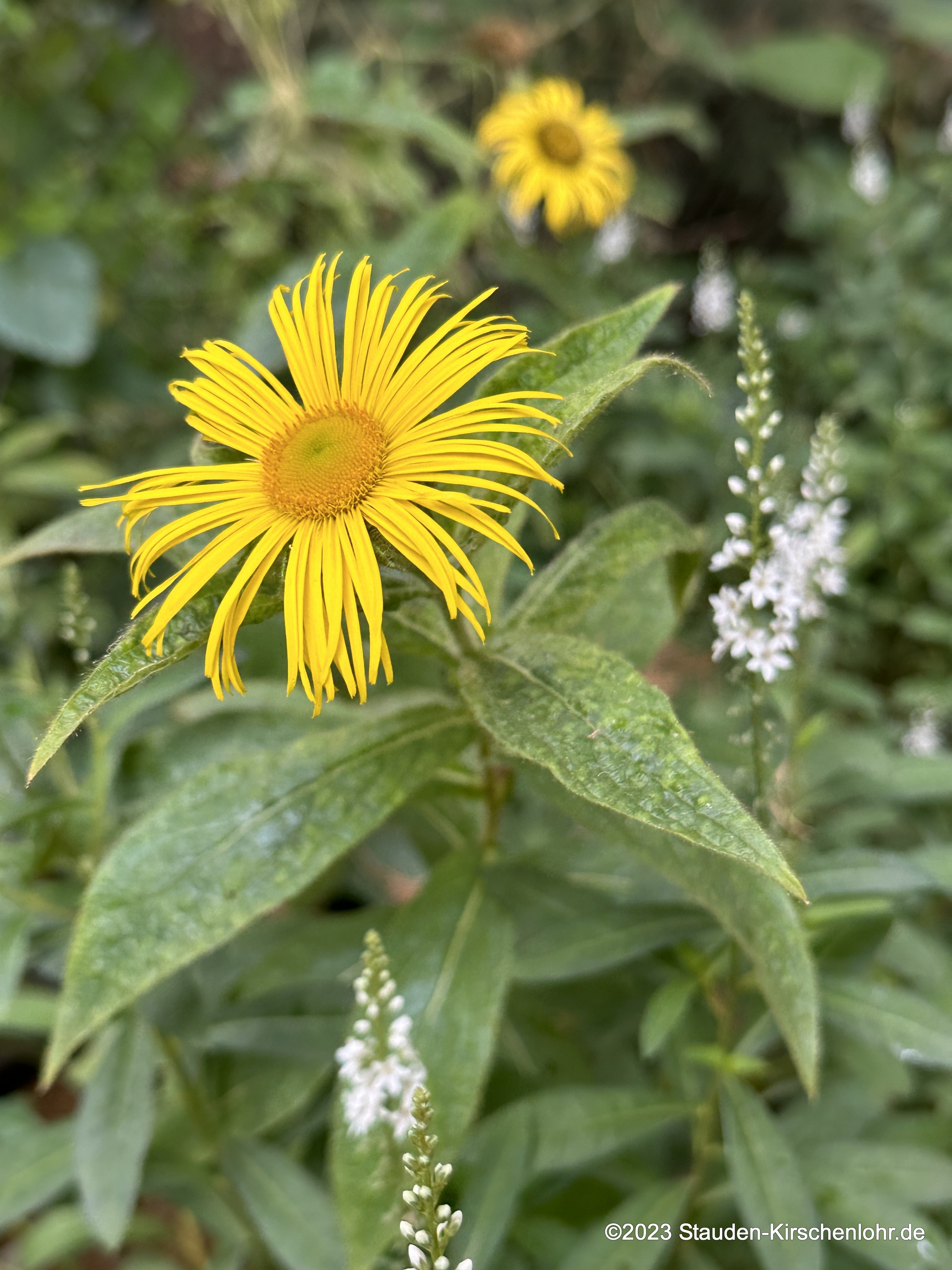 Feine, goldgelbe Strahenblüten mit grangegelbem Blütenboden. Ovale bis lanzettliche Blätter mit deutlicher Nervatur. Bevorzugt gutversorgte Standorte. Sommergün.