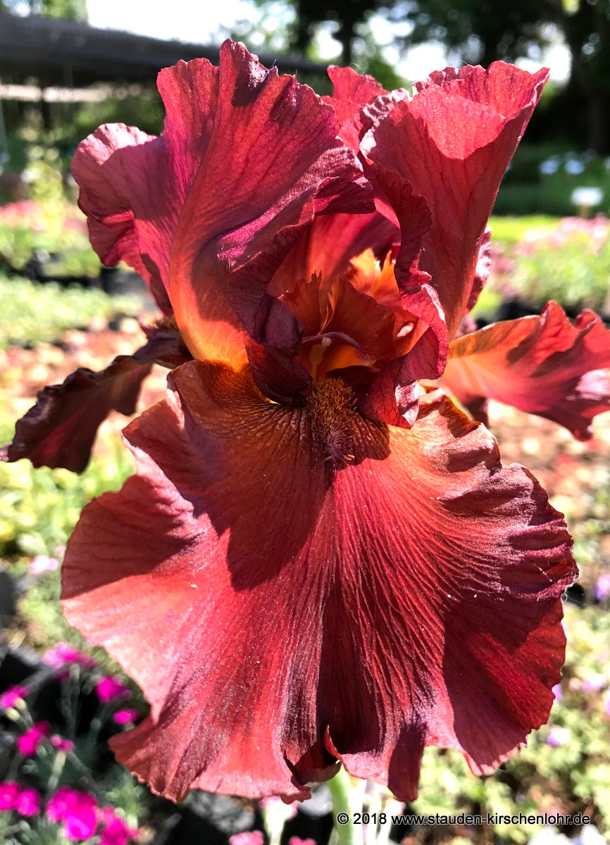 Einheitliches Kupferrot, in Höhe der bronzenen kupfernen Bärte etwas heller. Gewellte Blumen in hübscher Grösse, verzweigte Schäfte.