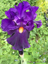 Intensive purpurviolette Blütenblätter, samtartige purpurschwarze Sepalen und hellere Umrandungen. Kräftige rot-orangefarbene Bärte. Reichblühend.
