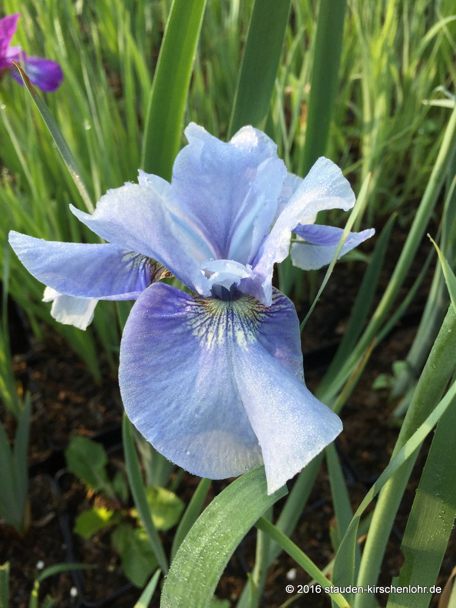 Traumhafte, große, klar hellblaue Blüten. Fantastische Tamberg-Züchtung. Eine unserer Favoriten. Sehr selten und begehrt. Lineale, länglich zugespitzte Blätter. Sommergrün.