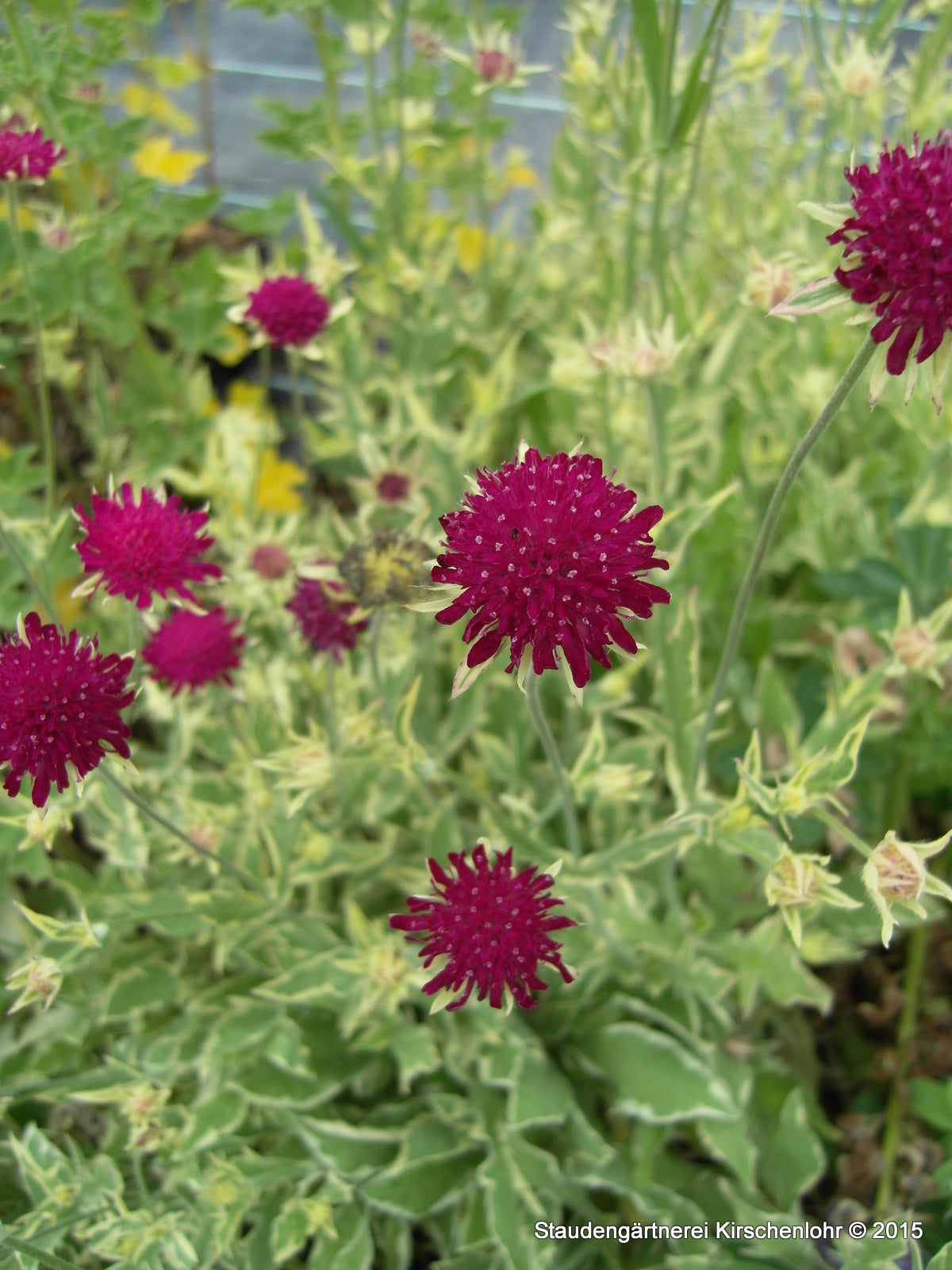 Dunkel weinrote Blütenscheiben. Fantastischer Farbton. Lanzettliches, graugrünes Laub mit gesägtem Rand. Sommergrün. Trockenheitstolerant.