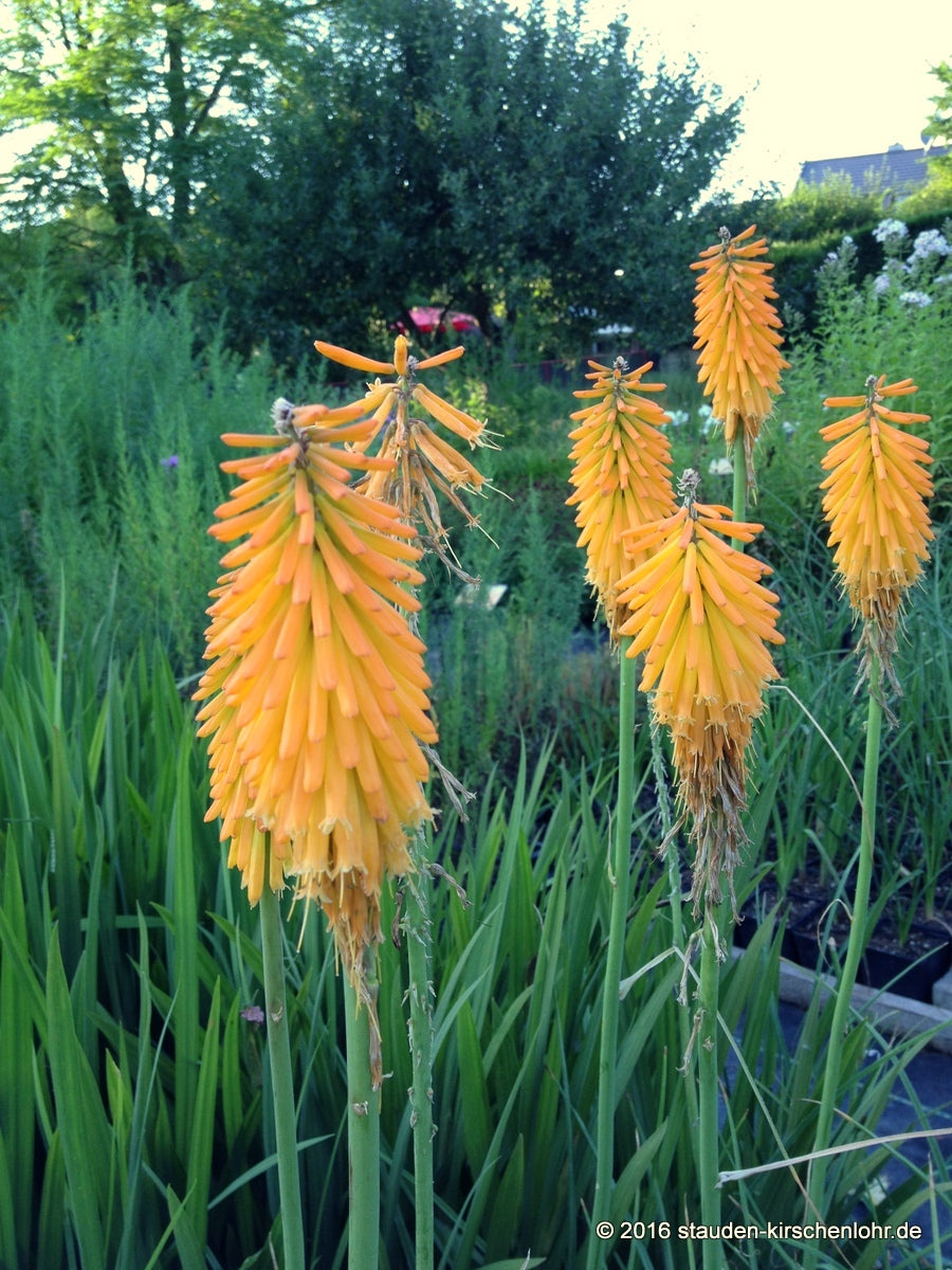 Auffälliger Strukturbildner. Bringt sehr oft Nachblüten (Remontiert). Grasartiges Laub.