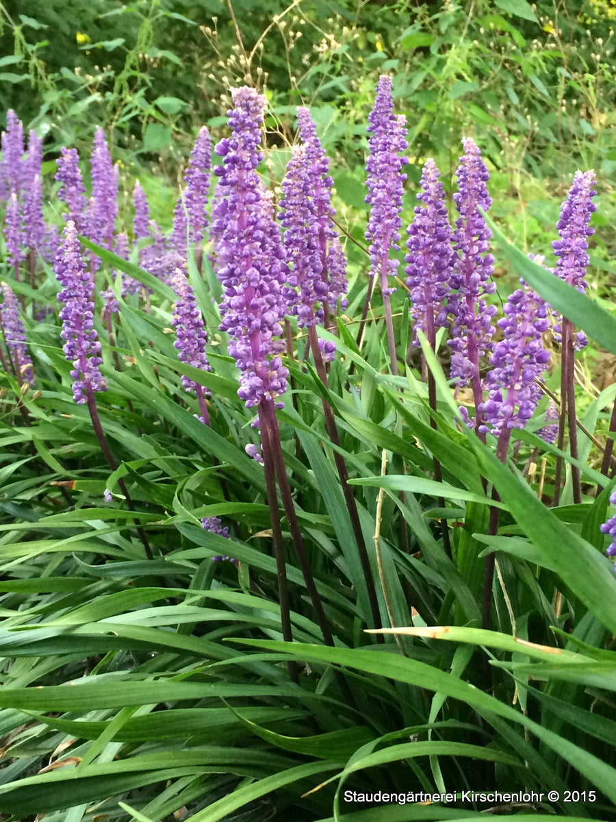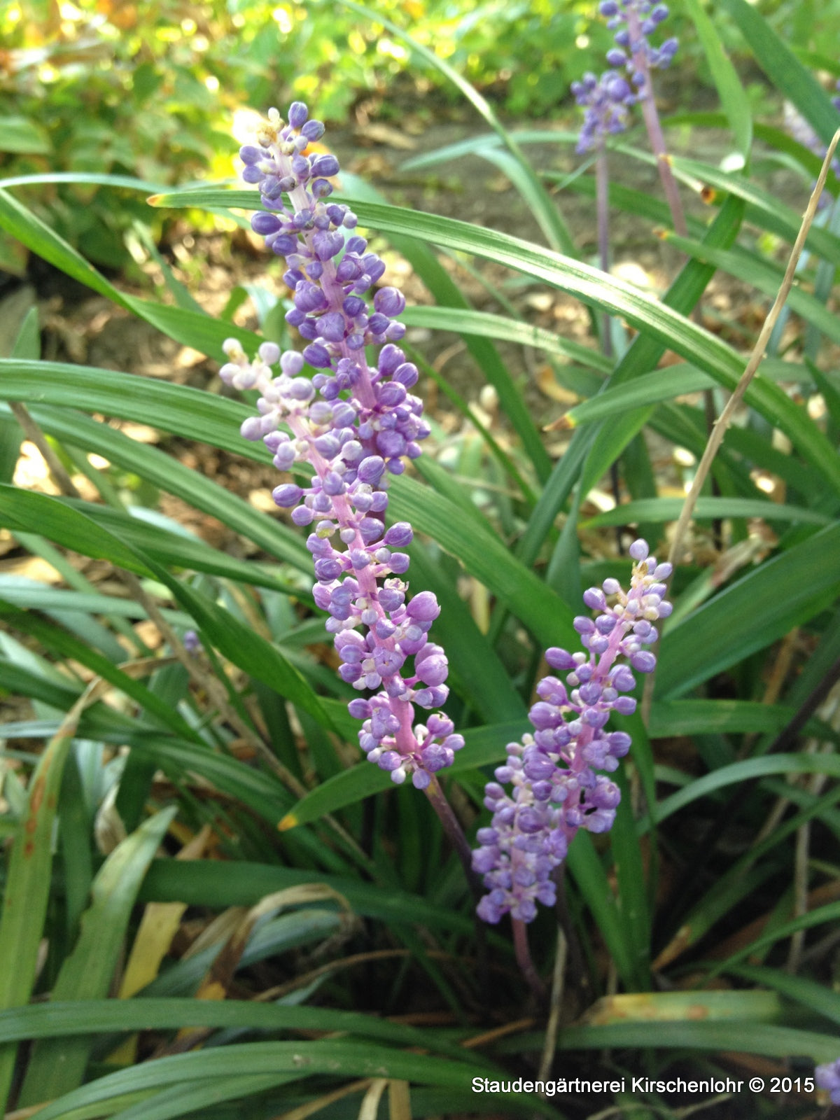 Kleine, violette Blüten, büschelig gedrängt, traubenrispig angeordnet. Riemenförmige, ledrige, grasartige Blätter. Sehr robuste und blütenreiche Sorte. Horstiger Wuchs. Immergrün.