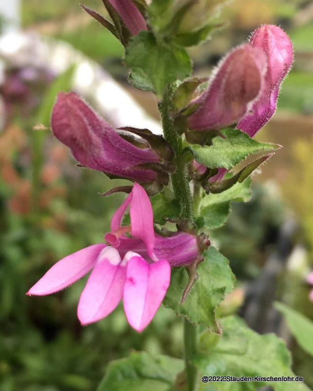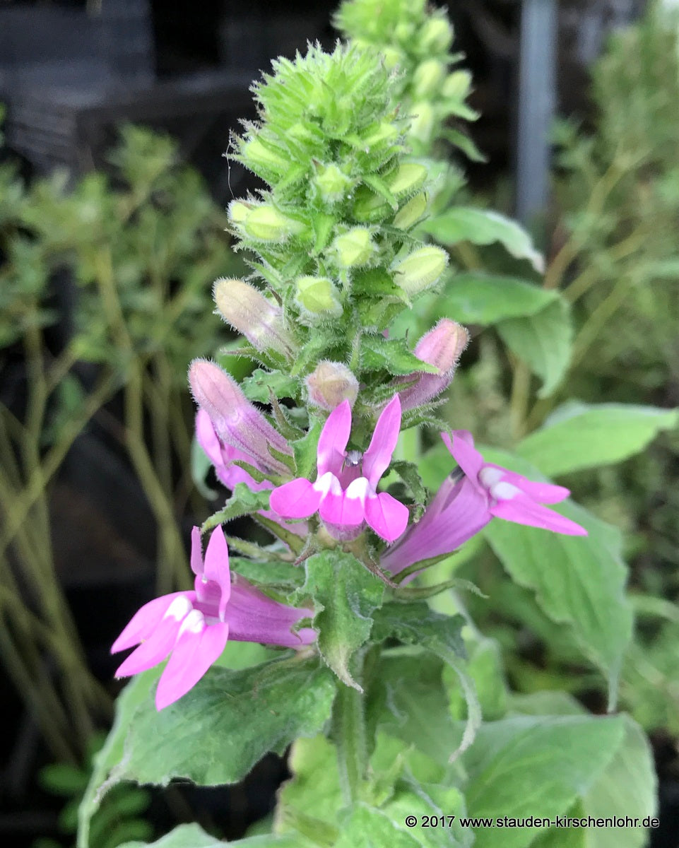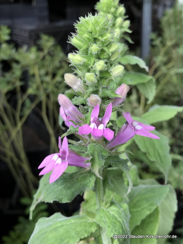 Rosenquarzfarbene Einzelblüten, asymmetrisch, röhrig, in einer dichten, ährigen Traube. Frischgrüne Blätter. Stängel beblättert. Tolle Selektion. Wunderschöne farbiche Ergänzung des Sortiments!