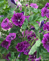 Violette, freistehende, vorderseits tief ausgerandete Blüten mit dunklerer Aderung. Gelappte bis tief eingeschnittene Blätter. Ein Rückschnitt nach der Blüte verlängert die Lebensdauer. Sommergün.
