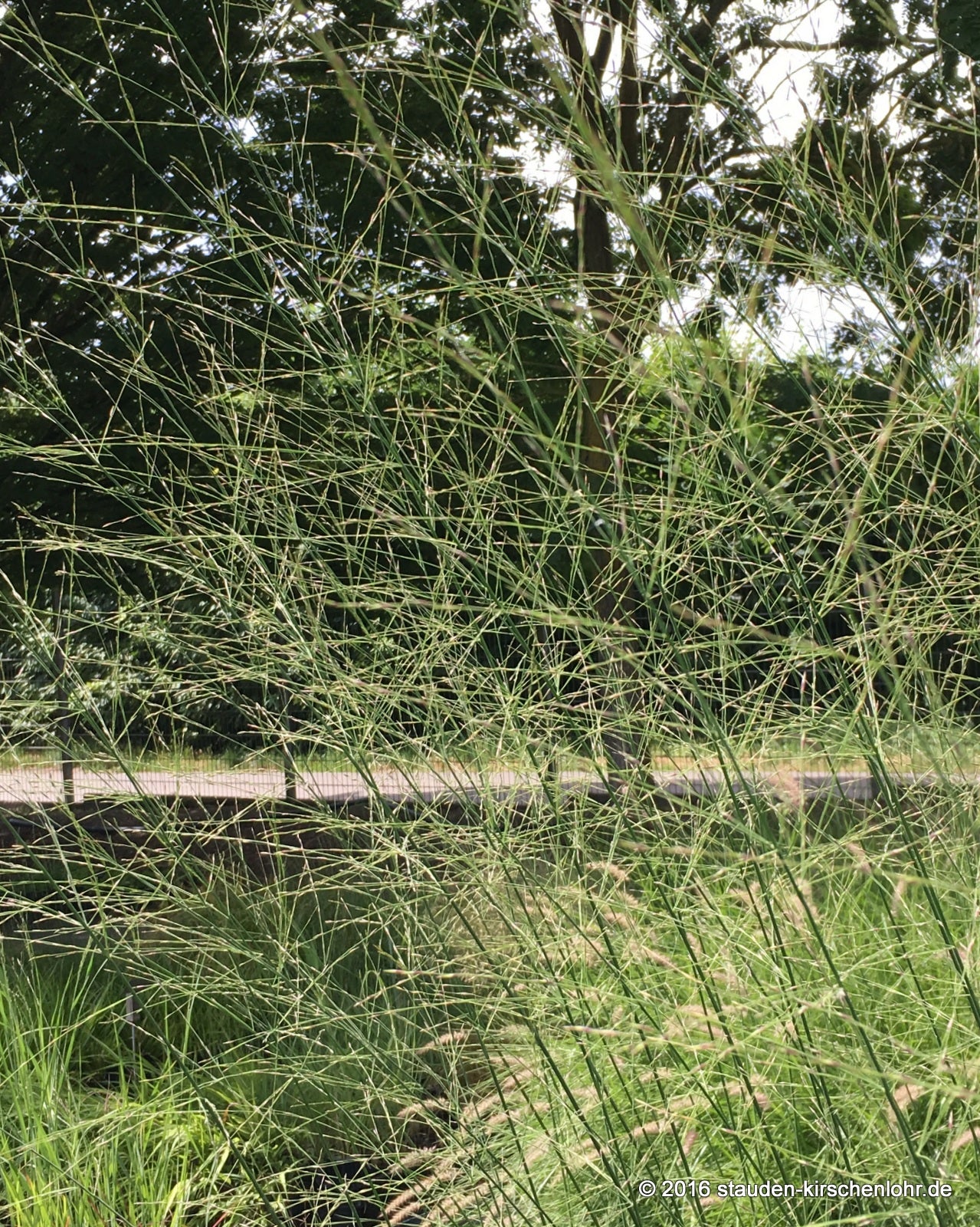 Große, gelblichbraune Blütenrispen. Locker bogige Blütenstände, sehr grazil, in feinen, transparent verzweigten Rispen. Wirkt elegante und durchsichtig. Gelbbraune Färbung.