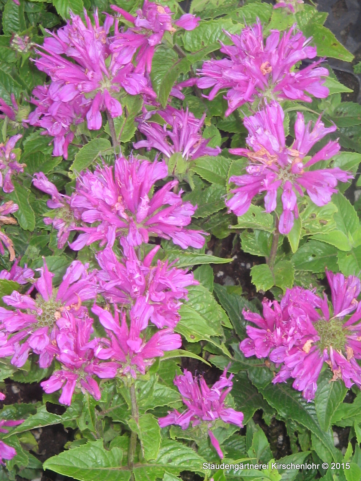Leuchtend rosa, Lippenförmige, zweilippige Blüten. Leuchtender Farbton. Eiförmige, breitlanzettliche, zugespitzte Blätter mit gesägtem Rand. Kompakter Wuchs. Sommergrün.