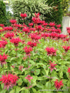 Scharlachrote, lange Lippenblüten, etagen- bis quirlartig angeordnet. Blütenstand über rotbraunen Hochblättern. Breitlanzettliche Blätter mit gesägtem Blattrand. Sommergün.