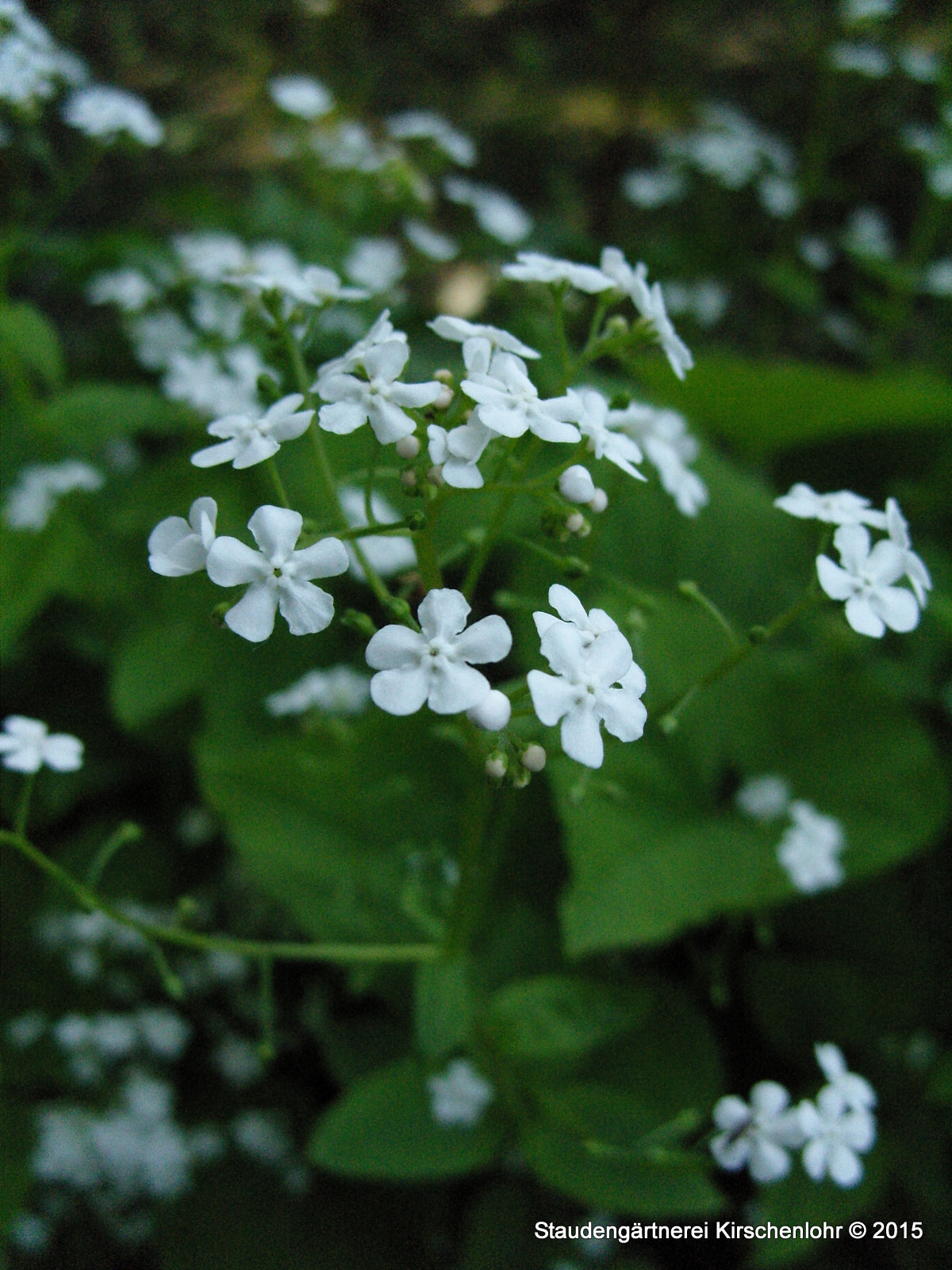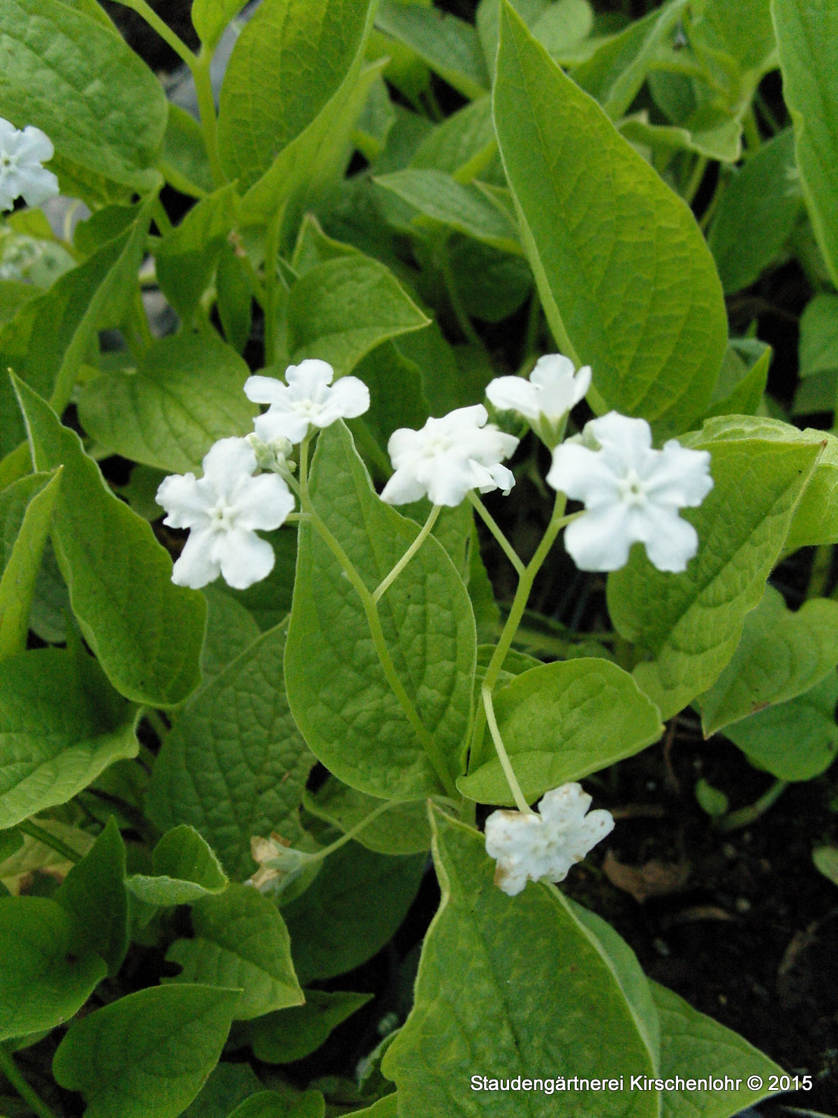 Scheibenförmige, weiße Blüten in lockerem, traubigen Blütenstand. Eiförmige, frischgrüne Blätter. Kriechender Wuchs. Anpassungsfähiger Flächendecker. Sommergün.