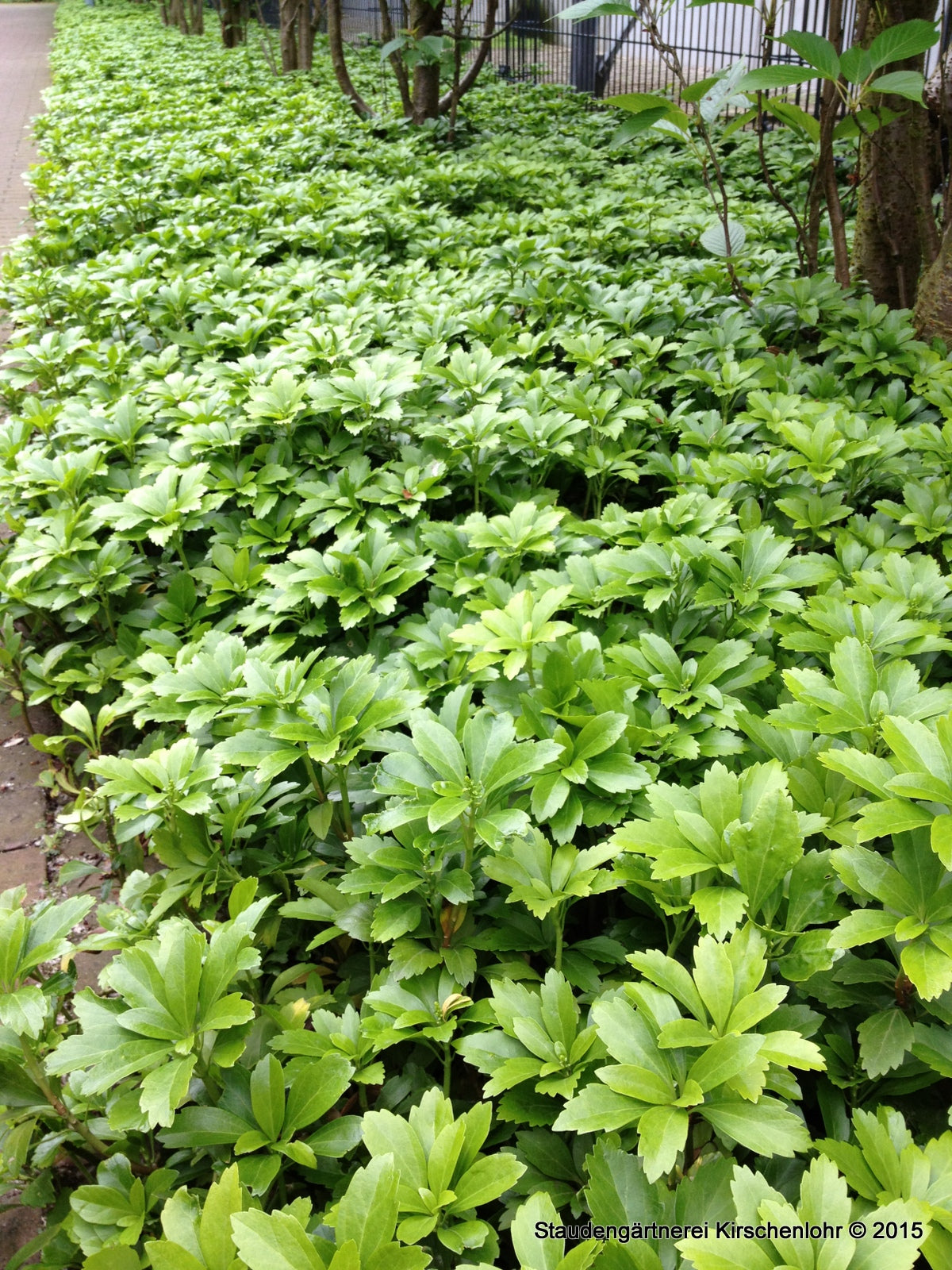 Weiße Blüten in einer aufrechten Ähre. Ledrige, rhomben- bis rautenförmige, sattgrüne Blätter, mit gekerbtem Blattrand. Immergrün. Wunderbarer Flächendecker.