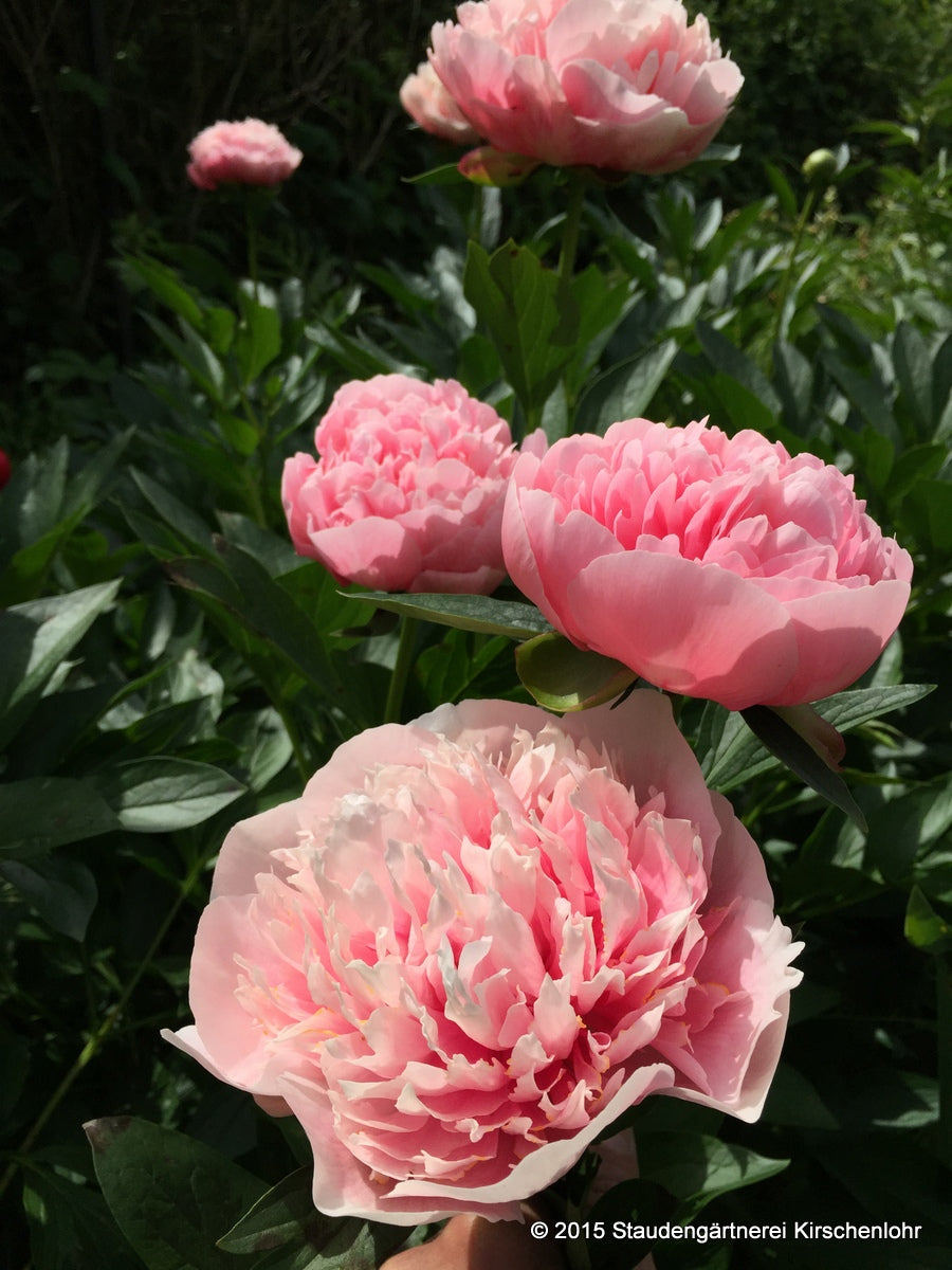 Gefüllte, bezauberndschöne, zart lachsrosa Blüten. Perfekt geformte Blüten in offener Rosenform auf starken Stängeln. Duft.