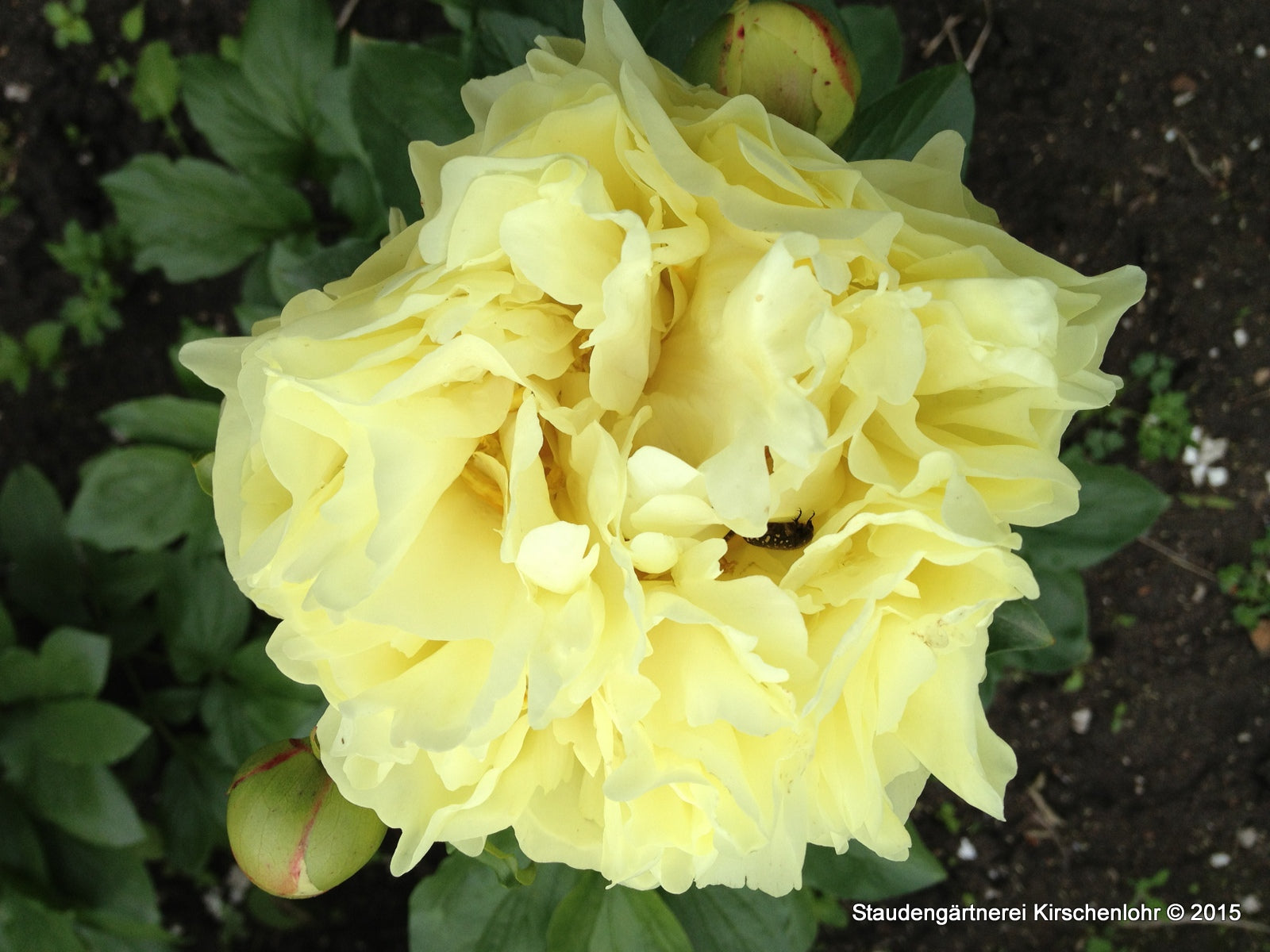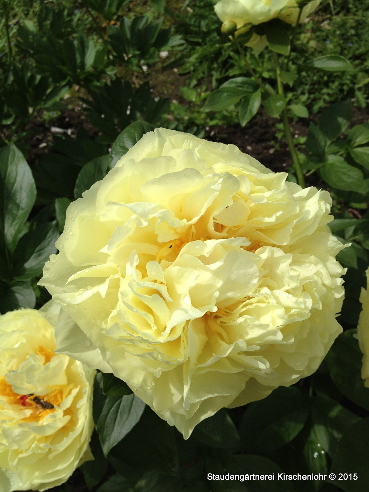 Sehr große, einfache bis halbgefüllte, hell zitronengelbe Blüten. Geniale Pflanze! Auffällig helles Laub. Stabile Stängel. Sehr gefragte, noch seltene Sorte.