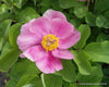 Rosa bis purpurrosa Blütenschalen mit goldgelben Staubgefäßen. Die Blätter sind mehrteilig, rundlich-oval bis elliptisch, matt bläulichgrün; unterseits flaumig-filzig. Bevorzugt durchlässige Böden.