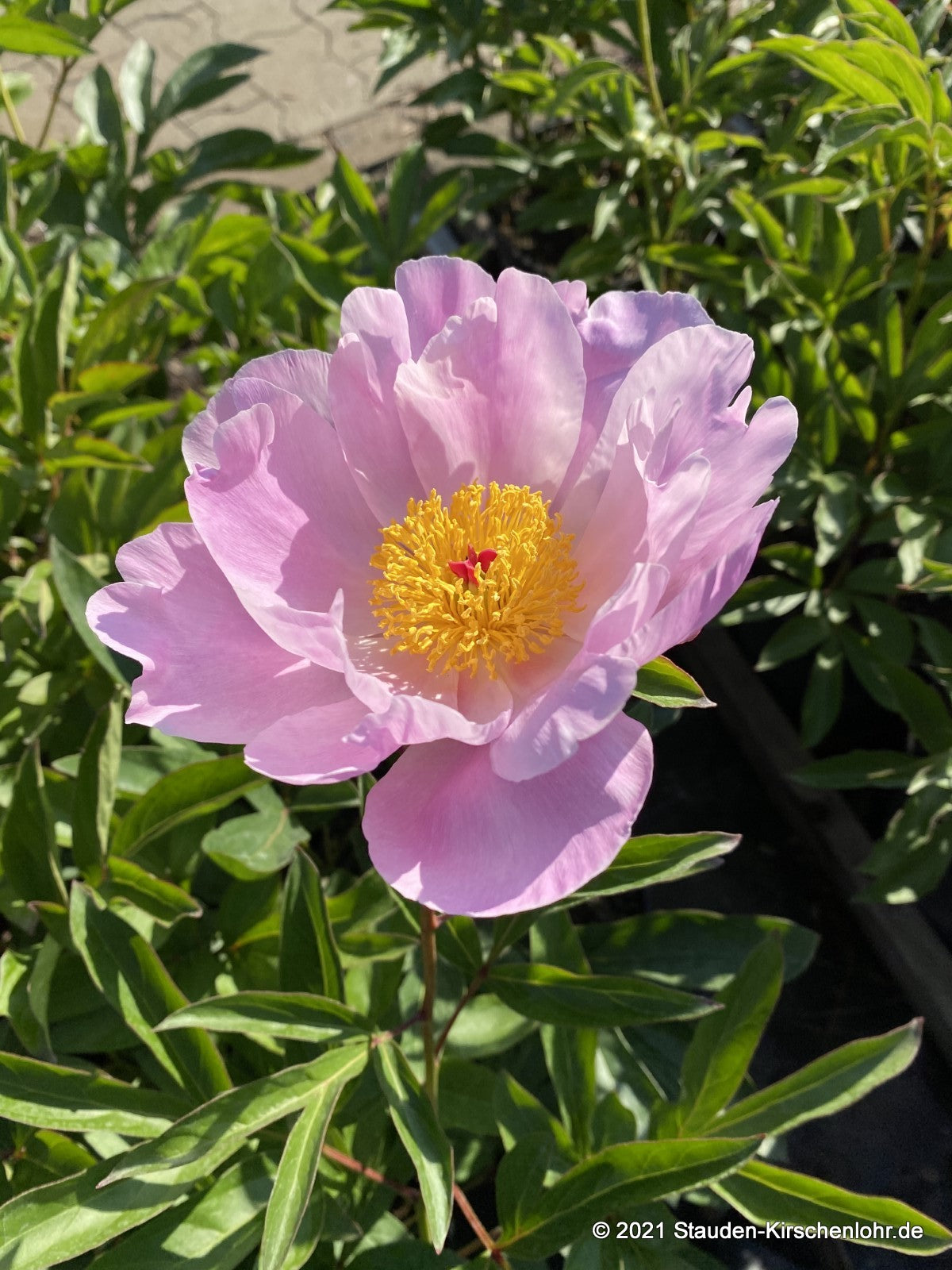 Einfache bis doppelt gelegte Blütenschale mit rosafarbenen Blütenblättern. Japanischer Blütentyp. Staminodien sind orangegelb. Angenehmer Duft.