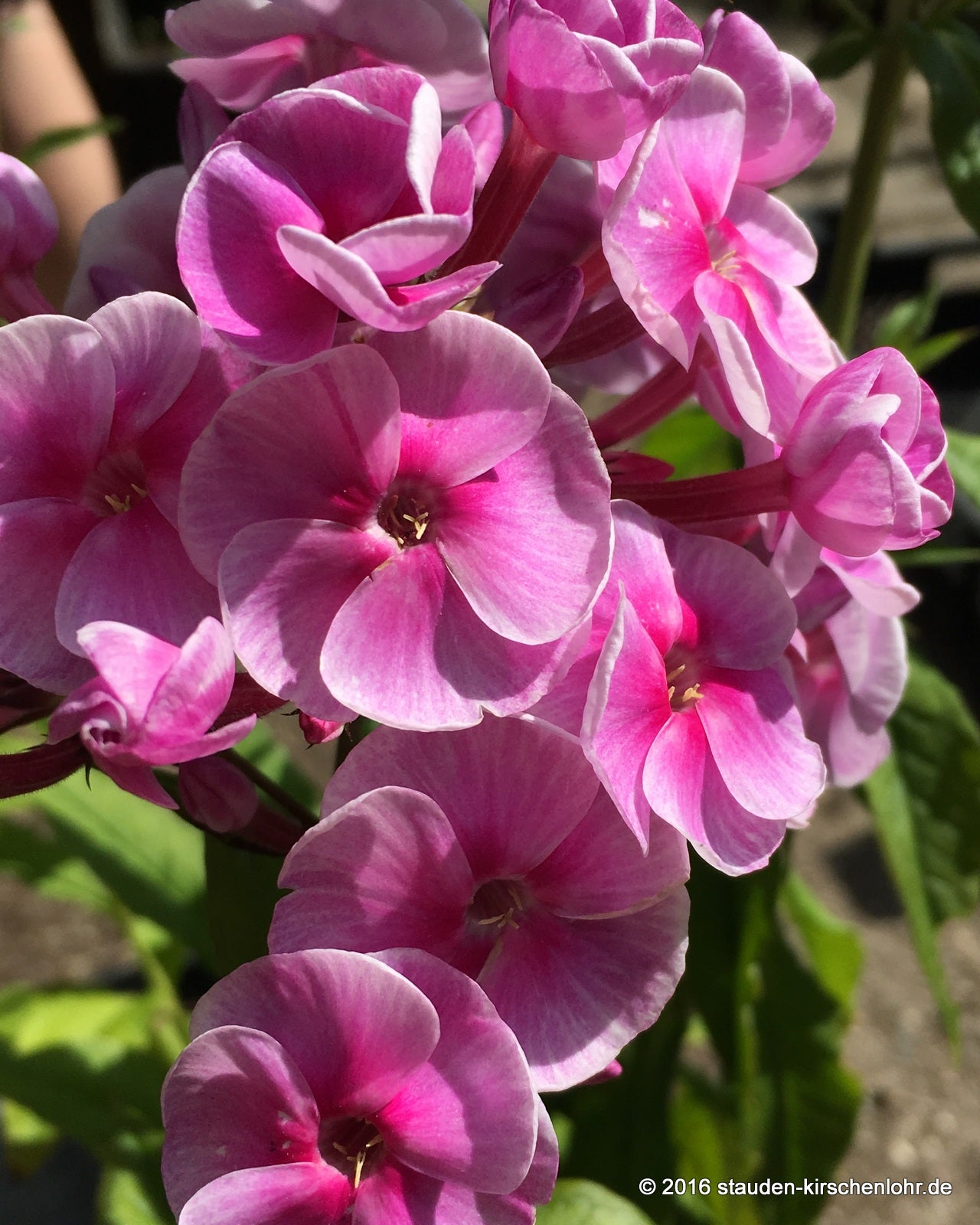 Scheibenförmige, rosa Blüten mit purpurrotem Auge. Blütenstand doldentraubig bis walzenförmig, mit zahlreichen Einzelblüten. Wuchs horstig. Aufrechte beblätterte Stängel. Sommergrün. Sämling welcher in der Staudengärtnerei Gaißmayer entstand. (Diese Sorte wird häufig als Ph. amplifola vermarktet!)