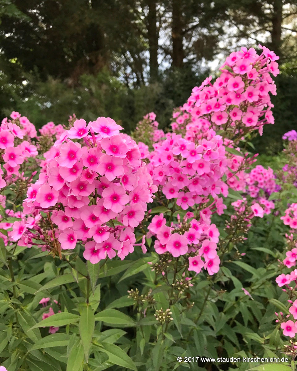 Kleine, hellrosa Blütchen, rot geäugt. Dichte doldentraubige Blütenrispen. Sehr gesund und vital. Lanzettliche Blätter. Von G. Bartels (NL).