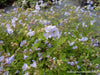Hellblaue Schalenblüten, in einem rispentraubigem Blütenstand an aufrechten Stielen. Elegant gefiedertes, hellgrünes Laub. Sommergün.
