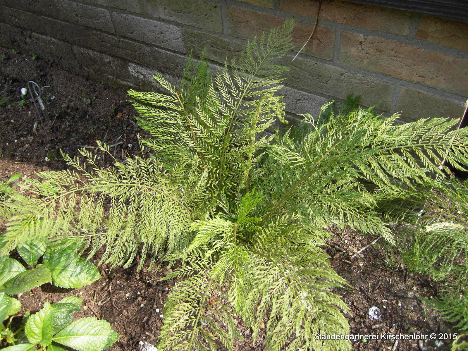Zweifach gefiederte, mit vielen Spreuschuppen besetzte, mittelgrüne Wedel. Die Fiedern sind fein. Wintergrün. Er ist anspruchslos und verträgt viele Standorte.